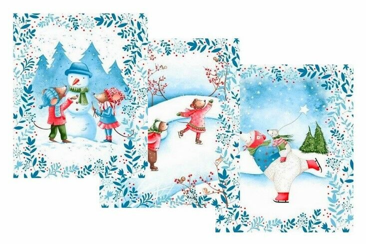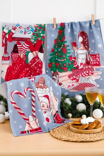 К-т полотенец "Снежные забавы" 50*60 см. - 3 шт. вафля хлопок 100%