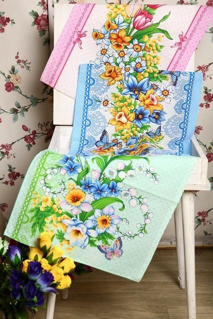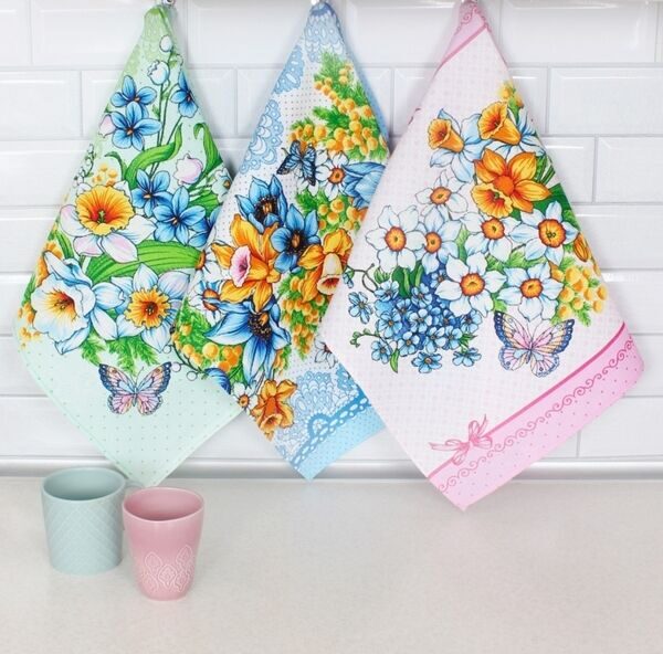 К-т полотенец "Весенний букет" 50*60 см. - 3 шт. вафля хлопок 100%