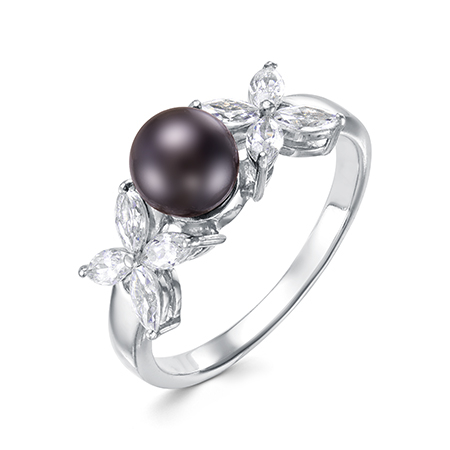 Кольцо с искуственным жемчугом родированное серебро 925*