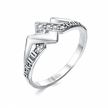 Кольцо (Спаси и Сохрани) из серебра ч/ч литьё с фианитом