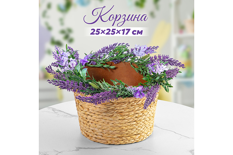 Корзинка «Лавандовое поле» от Elan Gallery станет оригинальным дополнением вашего интерьера. Размер изделия – 25х25х17 см, внутренний размер – 18,5х18,5х12 см. Её кайма украшена композицией из травинок и искусственных цветов лаванды. Красочное изделие дополнит и освежит антураж любой комнаты. Разместите его на столе, полке или подоконнике, чтобы оно всегда радовало глаз. Задействуйте в композиции с декоративными веточками и растениями или разнообразными фигурками. Посадите в неё игрушечных зверьков, чтобы добавить особого шарма вашим комнатам. Необычный элемент декора найдёт место в любой части вашей квартиры: в прихожей, гостиной, столовой или спальне. Это изящный и лёгкий способ добавить эстетики любому помещению. В коллекции бренда Элан Галерея вы найдёте множество как ярких, так и нежных декоративных украшений – каждый обязательно подберёт сувенир на свой вкус. Они станут чудесным подарком для родных, близких и коллег. Наполните пространство вокруг себя радостью! /
