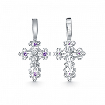 Крест из серебра литье с фианитом аметист