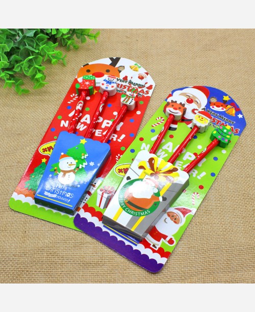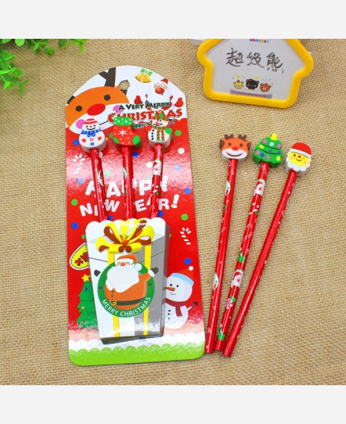 Набор простых карандашей Новогодних 3 шт с ластиками 9046294