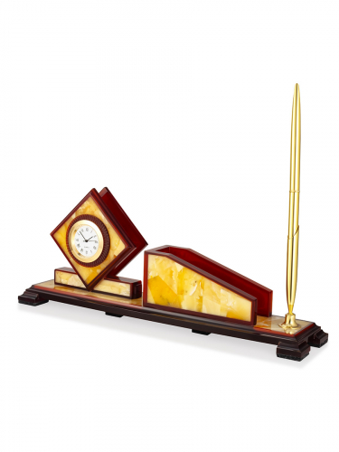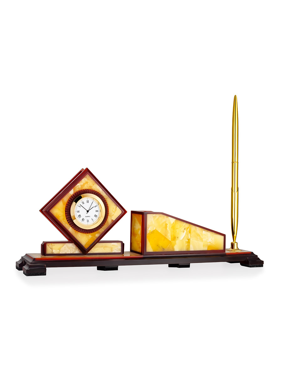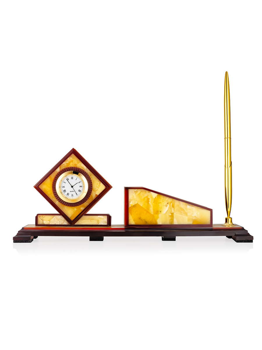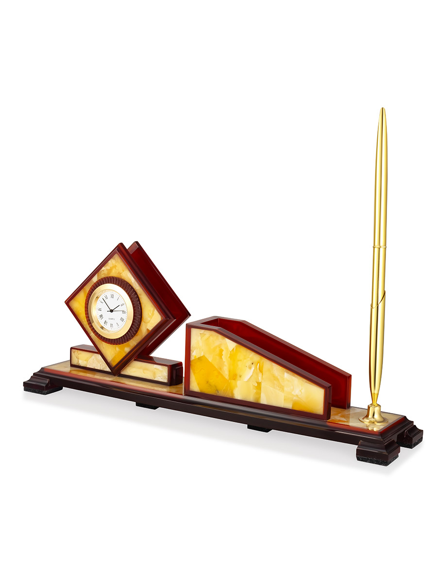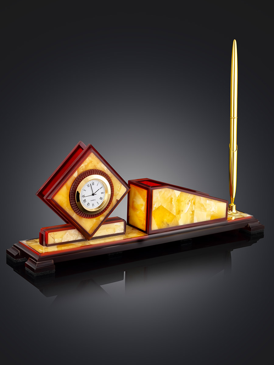 Настольный письменный прибор из натурального янтаря с часами «Престиж»