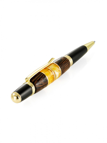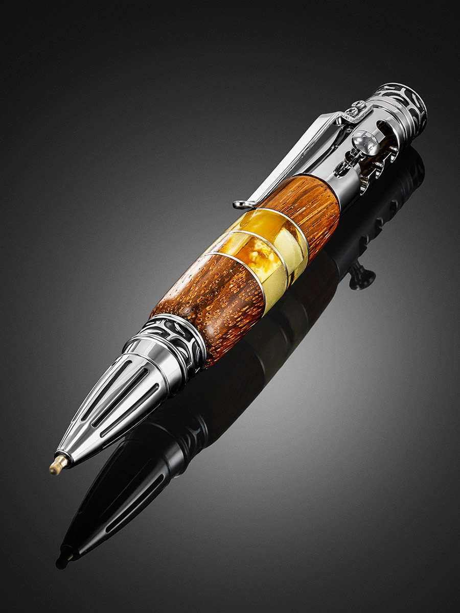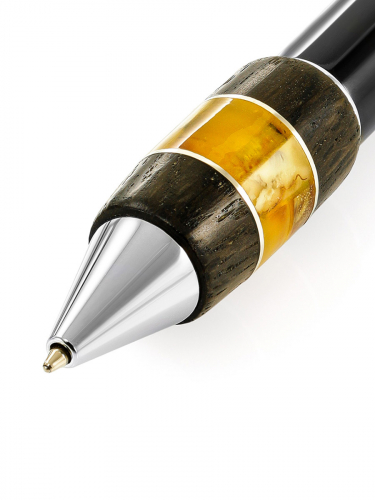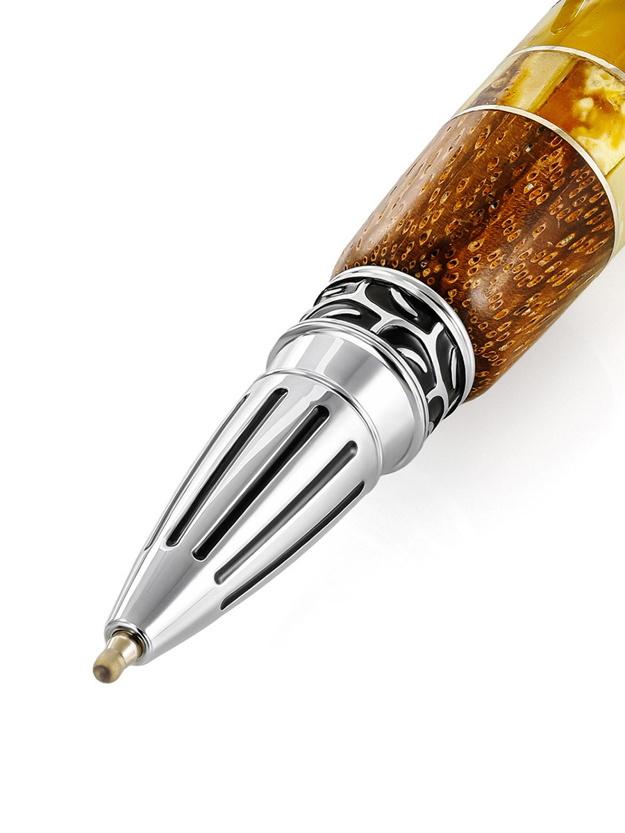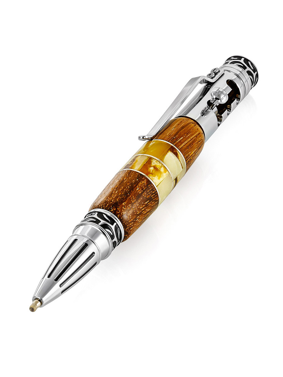 Необычная ручка, украшенная деревом и натуральным янтарём