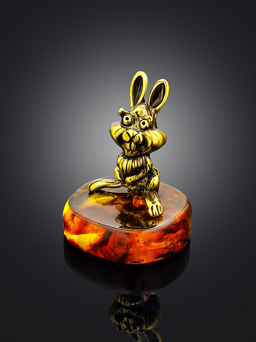 Очаровательный новогодний талисман «Крольчонок» с натуральным янтарём