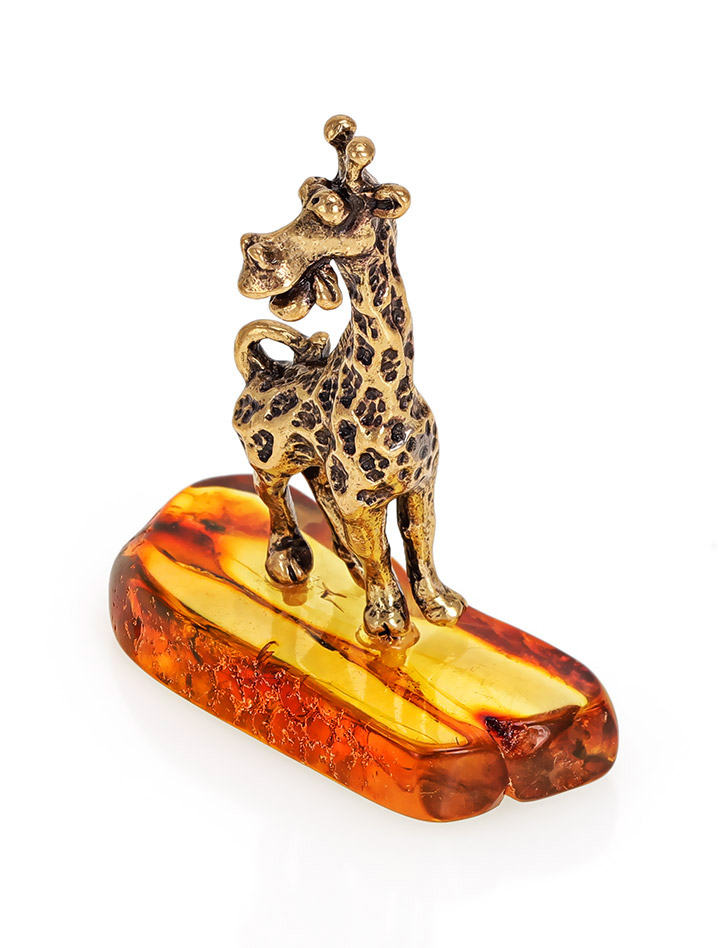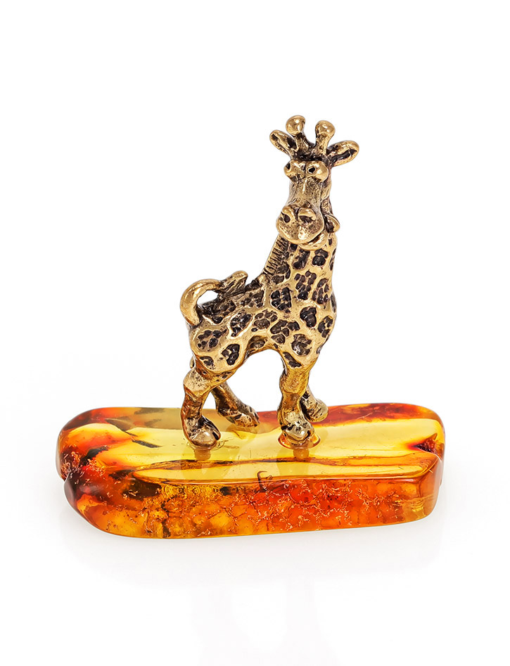 Очаровательный сувенир из латуни и натурального янтаря «Весёлый жираф»