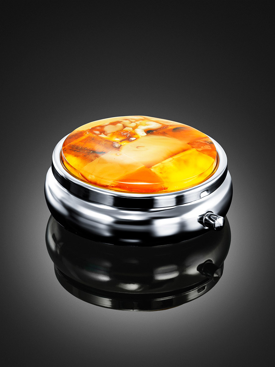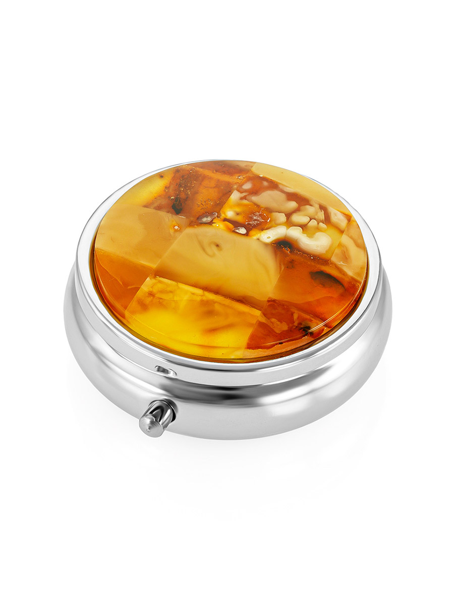 Органайзер для таблеток, украшенный натуральным янтарём