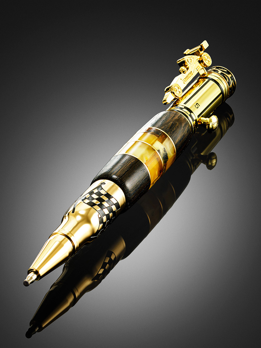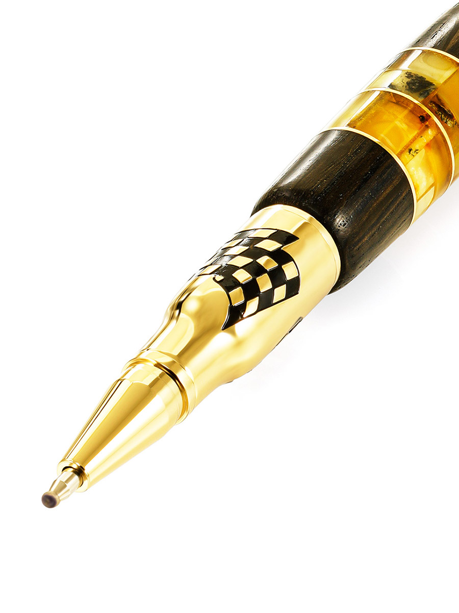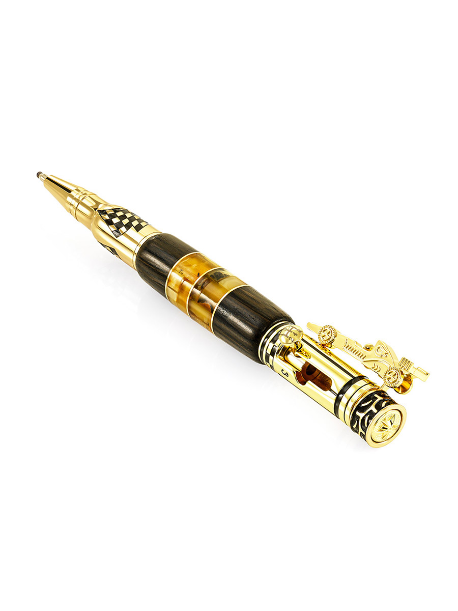 Оригинальная ручка авторской работы «Формула-1» с деревом и янтарём