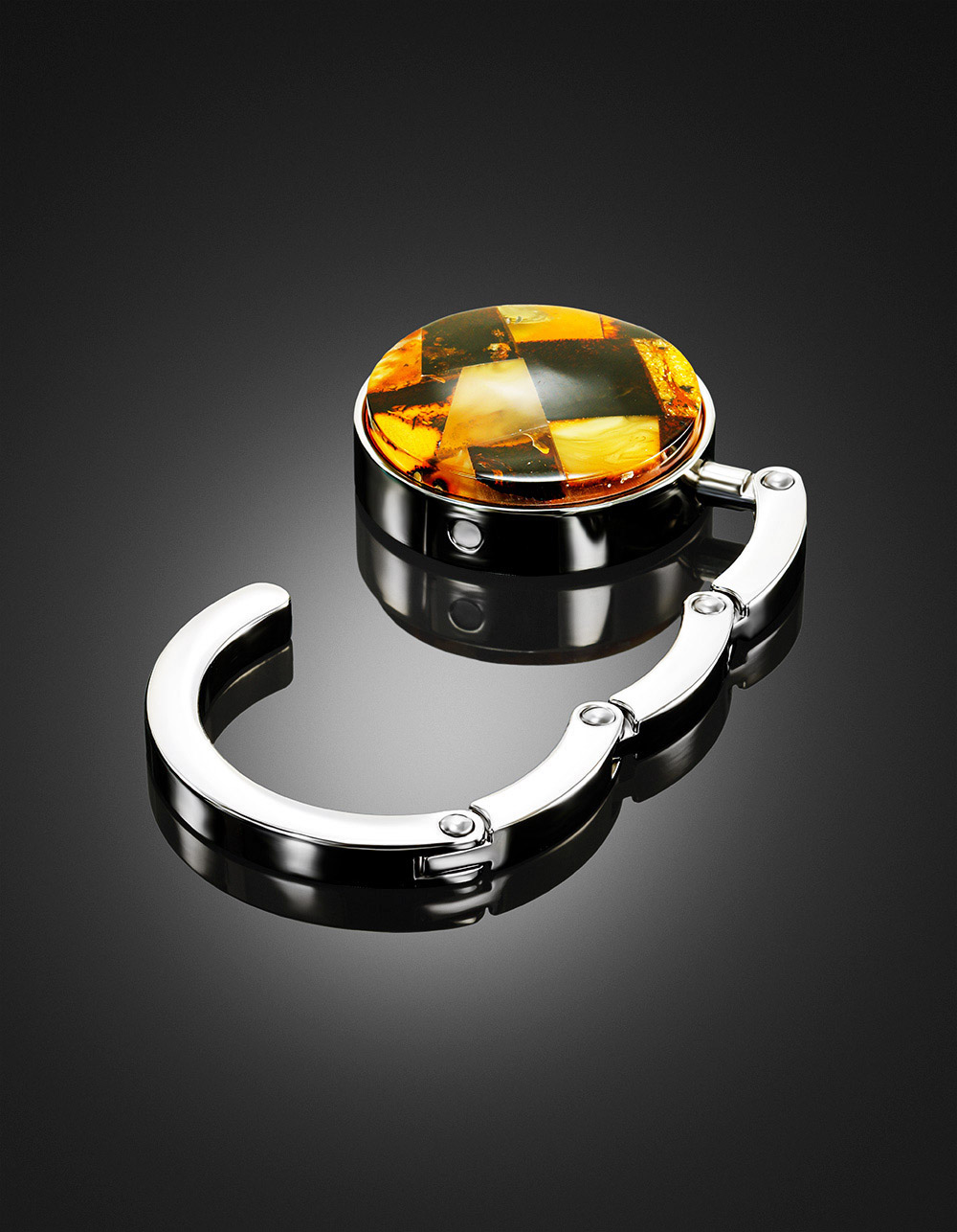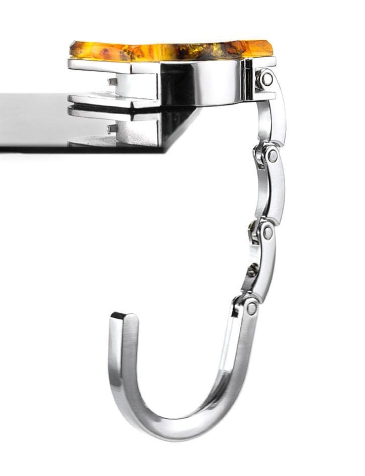Оригинальный держатель-крючок для сумки, украшенный натуральным янтарём