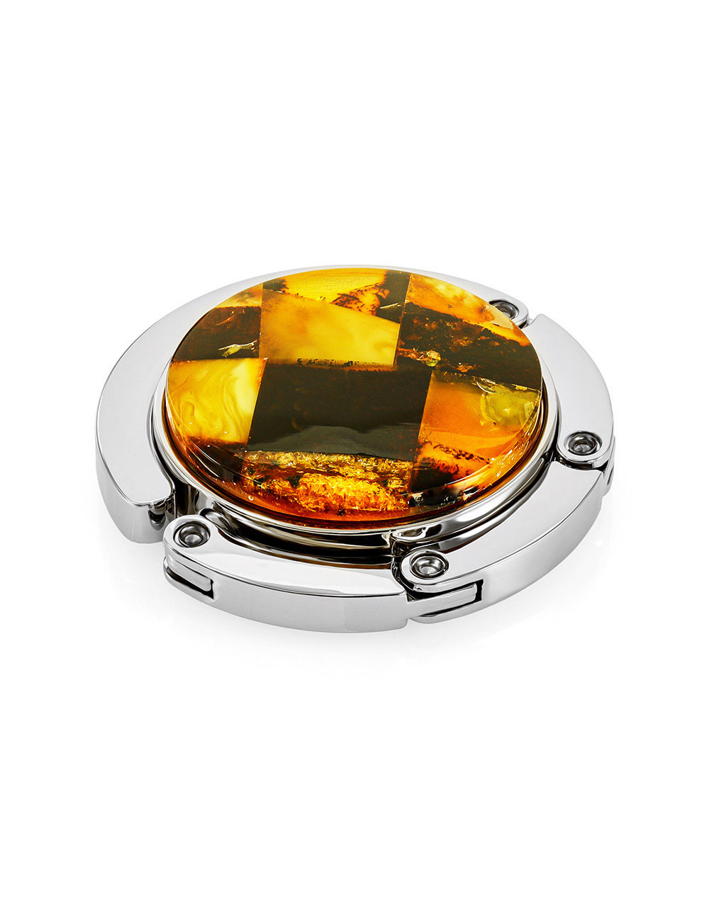 Размеры камня (мм): 31х31 Вес изд..показатьелия (г): 35 Цвет: микс Материалы: Натуральный янтарь / Металлелия (г): 35 Ошибка при загрузке данных! (https://amberholl.ru/opt/catalog/different_amber_souvenirs/natural_amber_bag_hook_holder_n290301/)