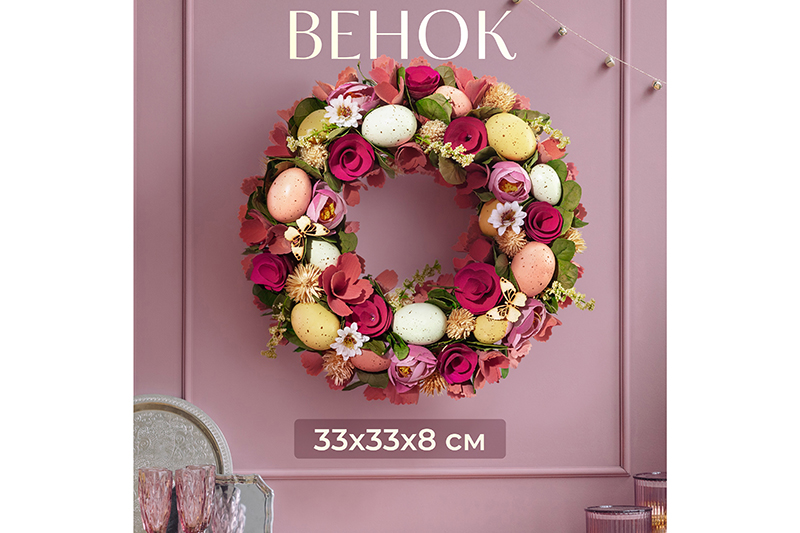 Венок «Бабочки в саду» от Elan Gallery станет изящным дополнением вашего интерьера. Размер изделия – 33х33х8 см. Представляет собой композицию из сухоцветов, декоративных цветочков и искусственных веточек. Выполнен в оттенках розового, зелёного и бежевого. Посреди цветов расположились искусственные, но очень реалистичные перепелиные яички, а также деревянные бабочки. Не имеет петельки для подвешивания. Светлая Пасха – один из главных праздников весны! Мы разработали коллекцию сезонных товаров для дома, которые помогут создать радостную и уютную атмосферу в квартире или на даче. Пасхальный декор преобразит домашний интерьер и поможет встретить праздник в кругу любимых. Поставьте его на стол, полку или подоконник, оперев о стенку или окно. Повесьте на дверь, шкаф или свободный крючок, чтобы изделие всегда было на виду и радовало глаз. Сделайте частью праздничного стола, чтобы привнести ощущение чуда. Задействуйте в тематическом оформлении с фигурками, статуэтками и венками. Посадите в его центр пасхальных зверьков: зайчиков, курочек и цыплят. Необычный элемент декора найдёт место в любой части вашей квартиры: в прихожей, гостиной, столовой и спальне. Это изящный и лёгкий способ добавить эстетики любому помещению. В коллекции бренда Элан Галерея вы найдёте множество как ярких, так и нежных декоративных украшений – каждый обязательно подберёт сувенир на свой вкус. Они станут чудесным подарком для родных, близких и коллег. Наполните пространство вокруг себя радостью и весенним настроением! /