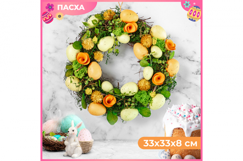 Венок «Оранжевый всплеск» от Elan Gallery станет изящным дополнением вашего интерьера. Размер изделия – 33х33х8 см. Представляет собой композицию из сухоцветов, декоративных цветочков и искусственных веточек. Выполнен в оттенках оранжевого, зелёного и жёлтого. Посреди цветов расположились искусственные, но очень реалистичные перепелиные яички. Не имеет петельки для подвешивания. Светлая Пасха – один из главных праздников весны! Мы разработали коллекцию сезонных товаров для дома, которые помогут создать радостную и уютную атмосферу в квартире или на даче. Пасхальный декор преобразит домашний интерьер и поможет встретить праздник в кругу любимых. Поставьте его на стол, полку или подоконник, оперев о стенку или окно. Повесьте на дверь, шкаф или свободный крючок, чтобы изделие всегда было на виду и радовало глаз. Сделайте частью праздничного стола, чтобы привнести ощущение чуда. Задействуйте в тематическом оформлении с фигурками, статуэтками и венками. Посадите в его центр пасхальных зверьков: зайчиков, курочек и цыплят. Необычный элемент декора найдёт место в любой части вашей квартиры: в прихожей, гостиной, столовой и спальне. Это изящный и лёгкий способ добавить эстетики любому помещению. В коллекции бренда Элан Галерея вы найдёте множество как ярких, так и нежных декоративных украшений – каждый обязательно подберёт сувенир на свой вкус. Они станут чудесным подарком для родных, близких и коллег. Наполните пространство вокруг себя радостью и весенним настроением! /