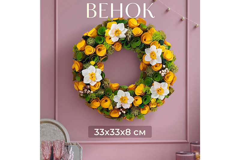 Венок «Солнечное утро» от Elan Gallery станет изящным дополнением вашего интерьера. Размер изделия – 33х33х8 см. Представляет собой композицию из сухоцветов, декоративных цветочков и искусственных веточек. Выполнен в жёлто-зелёных оттенках. Не имеет петельки для подвешивания. Светлая Пасха – один из главных праздников весны! Мы разработали коллекцию сезонных товаров для дома, которые помогут создать радостную и уютную атмосферу в квартире или на даче. Пасхальный декор преобразит домашний интерьер и поможет встретить праздник в кругу любимых. Поставьте его на стол, полку или подоконник, оперев о стенку или окно. Повесьте на дверь, шкаф или свободный крючок, чтобы изделие всегда было на виду и радовало глаз. Сделайте частью праздничного стола, чтобы привнести ощущение чуда. Задействуйте в тематическом оформлении с фигурками, статуэтками и венками. Посадите в его центр пасхальных зверьков: зайчиков, курочек и цыплят. Необычный элемент декора найдёт место в любой части вашей квартиры: в прихожей, гостиной, столовой и спальне. Это изящный и лёгкий способ доставить эстетику любому помещению. В коллекции бренда Элан Галерея вы найдёте множество как ярких, так и нежных декоративных украшений – каждый обязательно подберёт сувенир на свой вкус. Они станут чудесным подарком для родных, близких и коллег. Наполните пространство вокруг себя радостью и весенним настроением! /