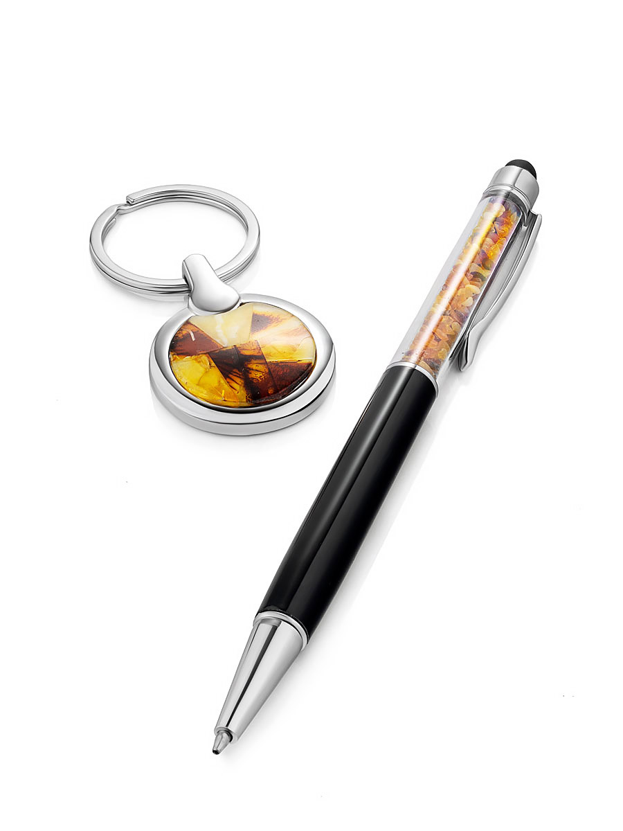 Подарочный набор с брелоком и ручкой, украшенными янтарной мозаикой