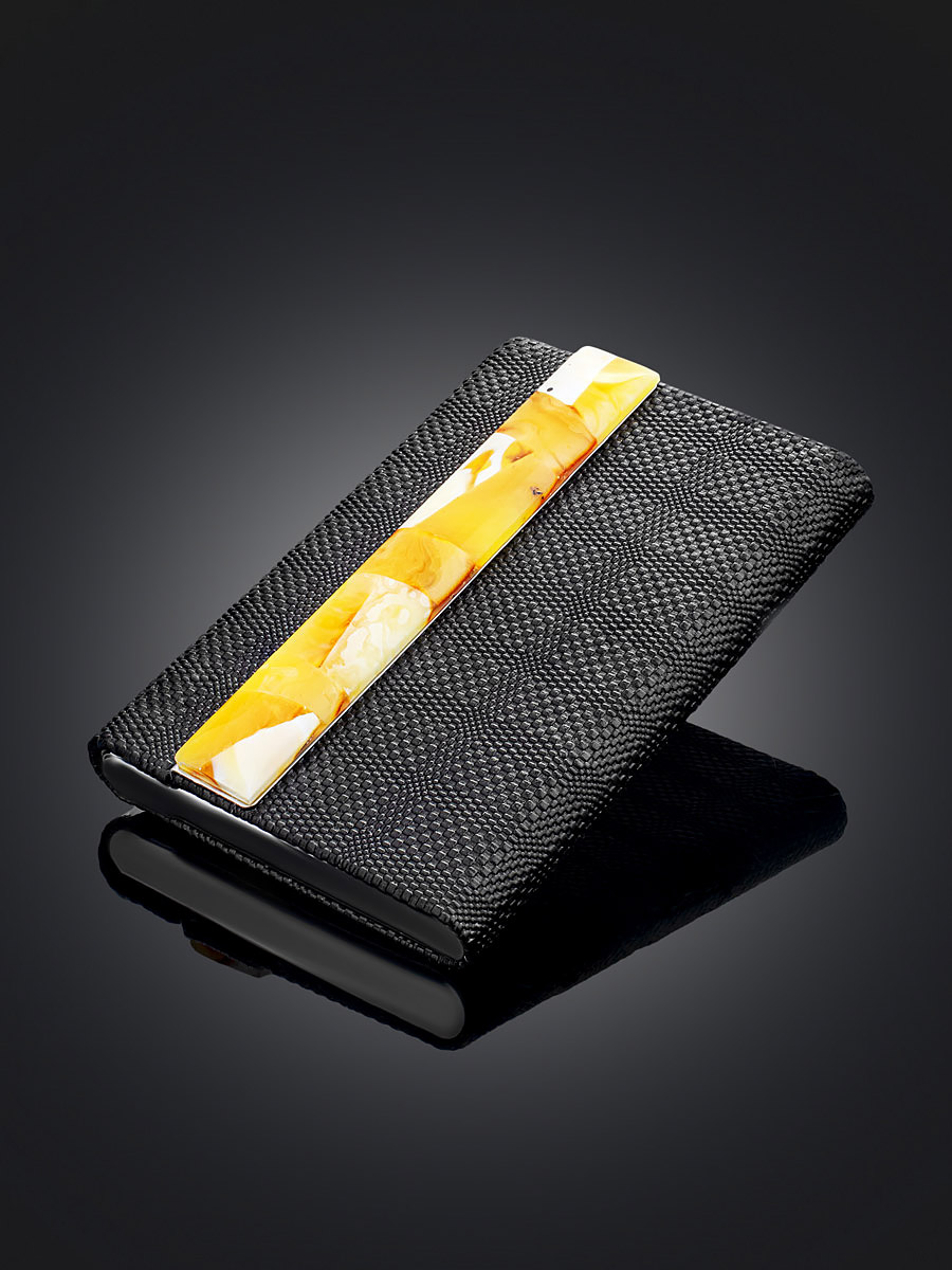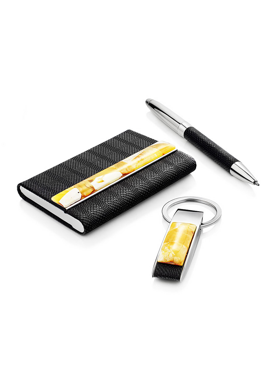 Подарочный набор с брелоком, визитницей и ручкой, украшенными янтарной мозаикой