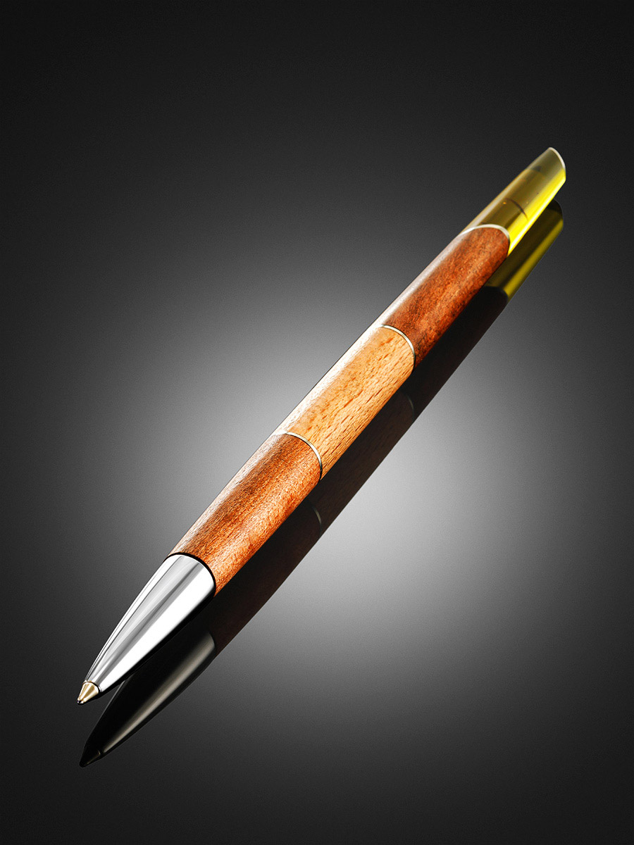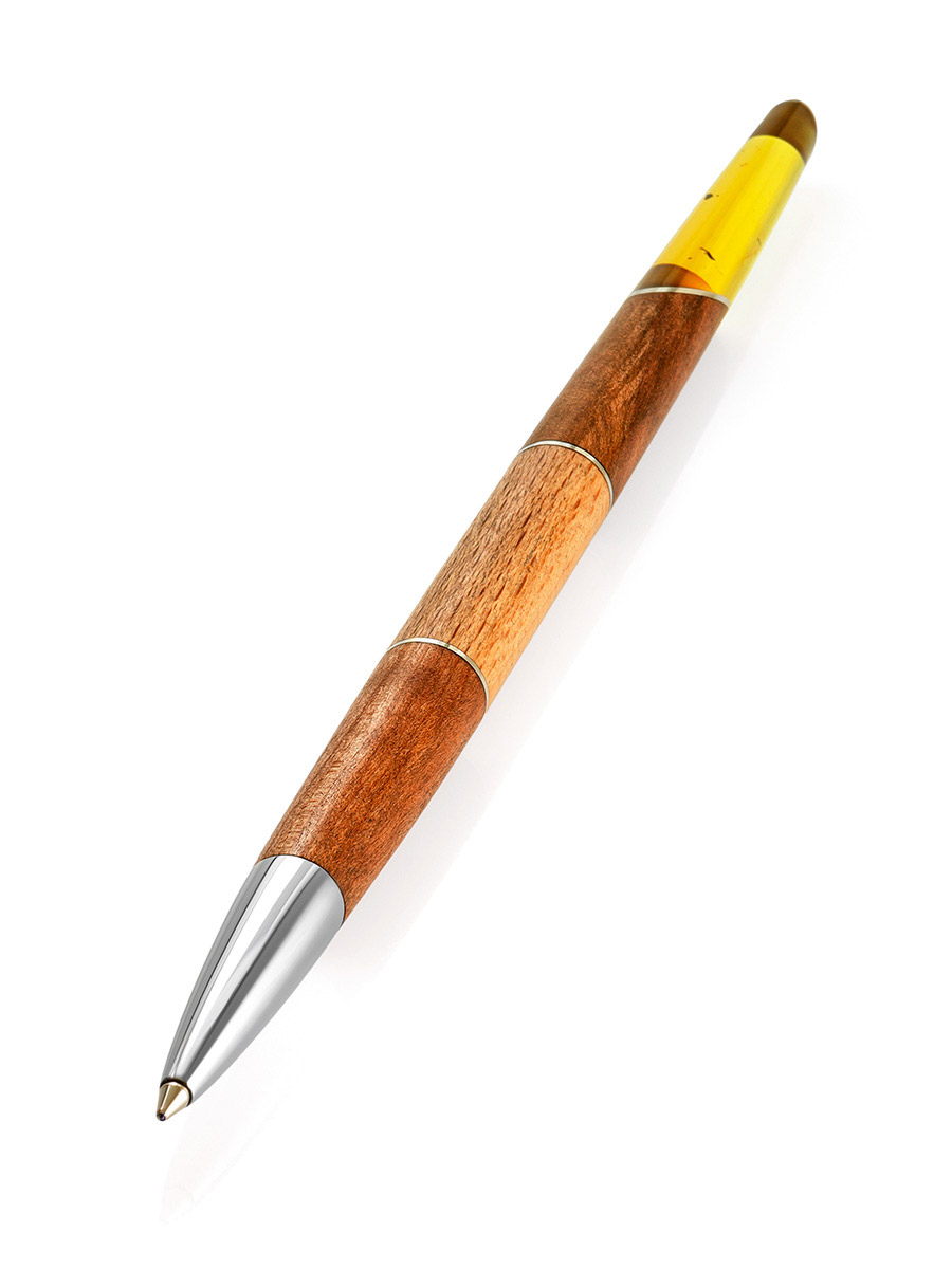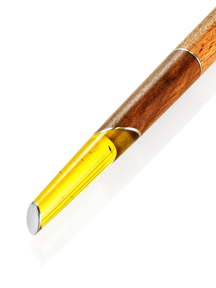 Ручка авторской работы из дерева и натурального янтаря «Олливандер»