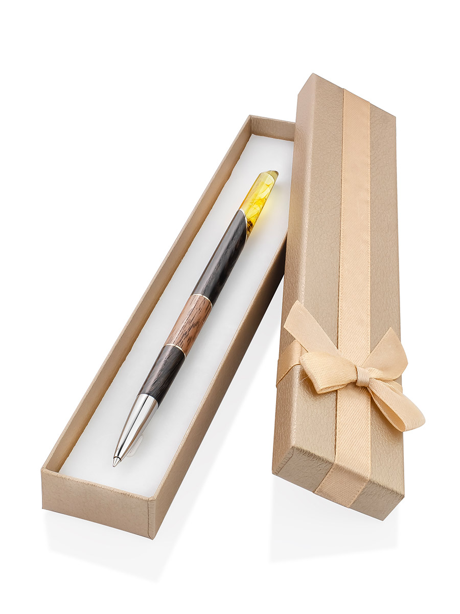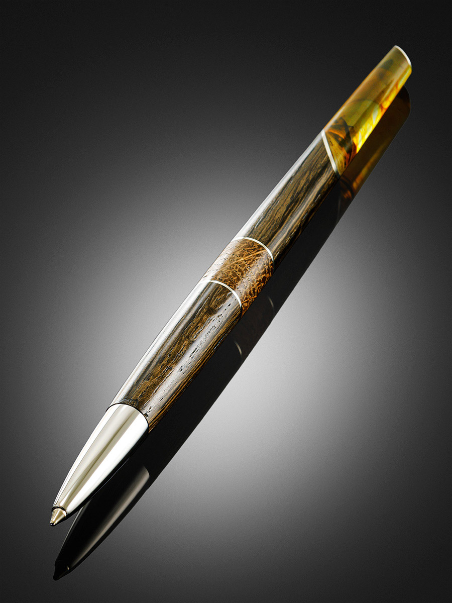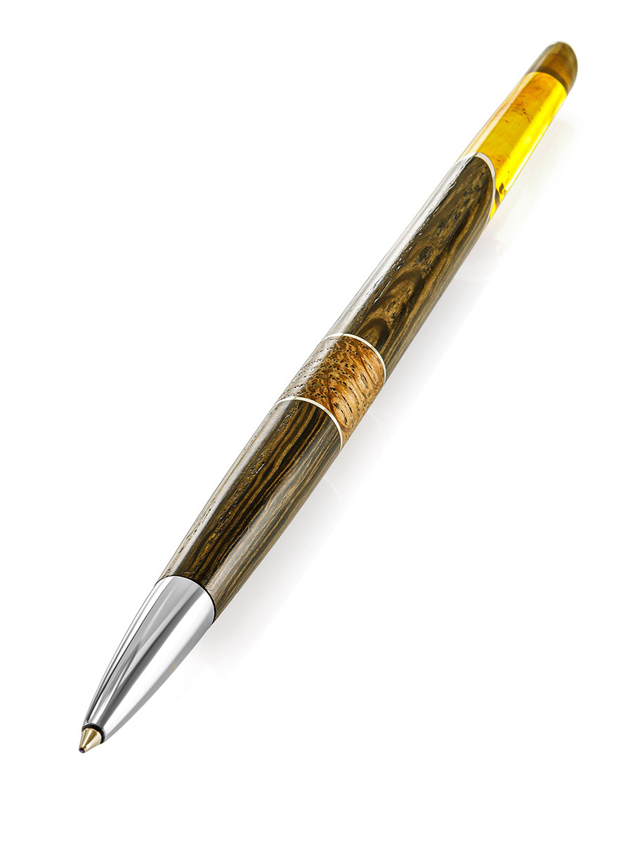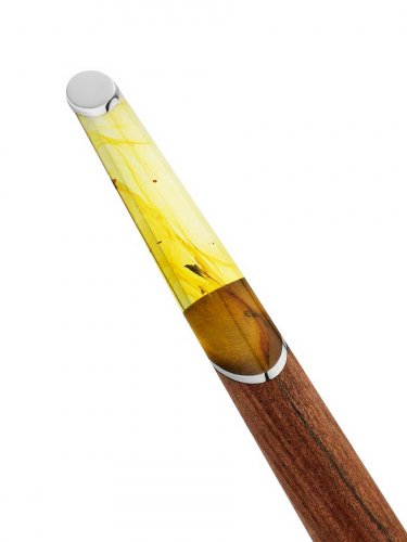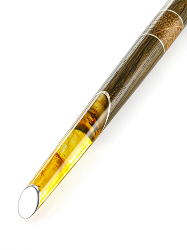 Ручка из дерева и натурального цельного балтийского янтаря с инклюзами «Олливандер»