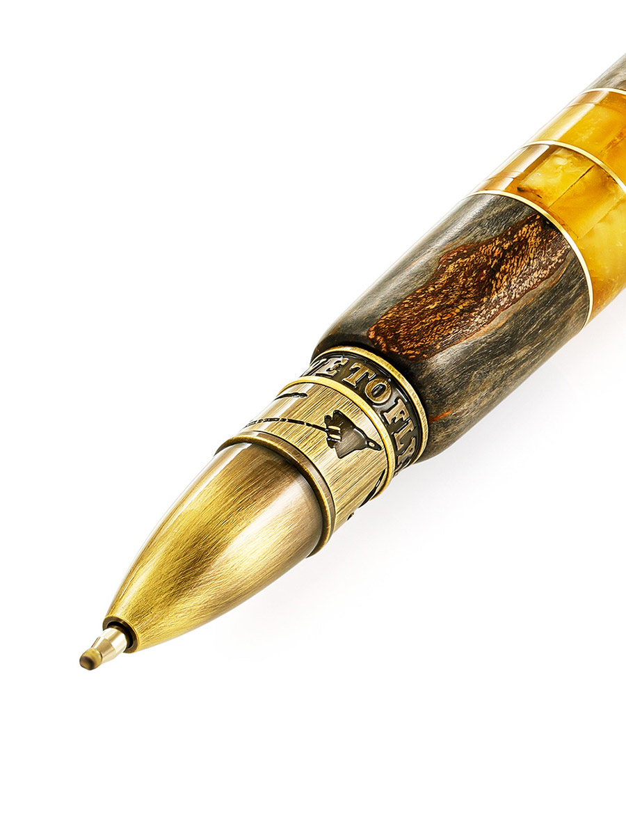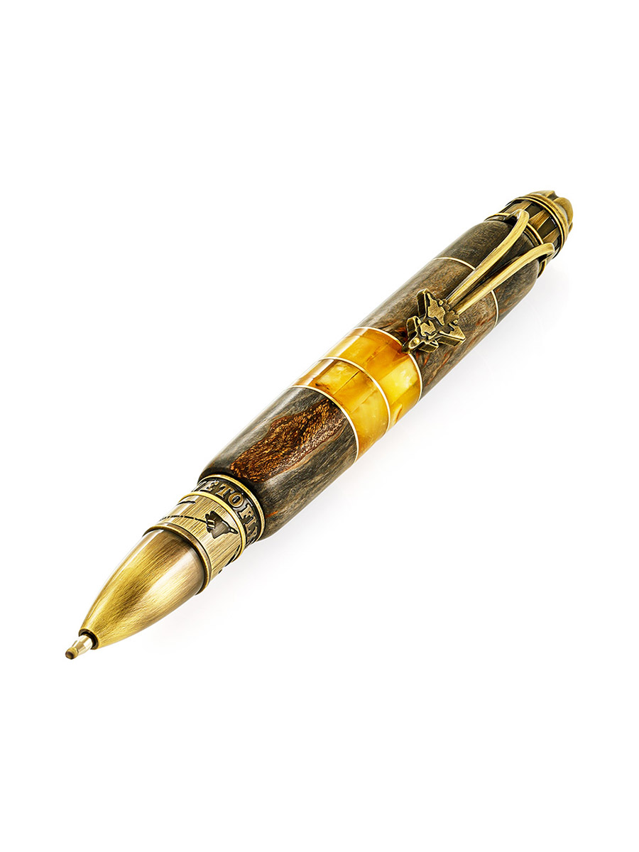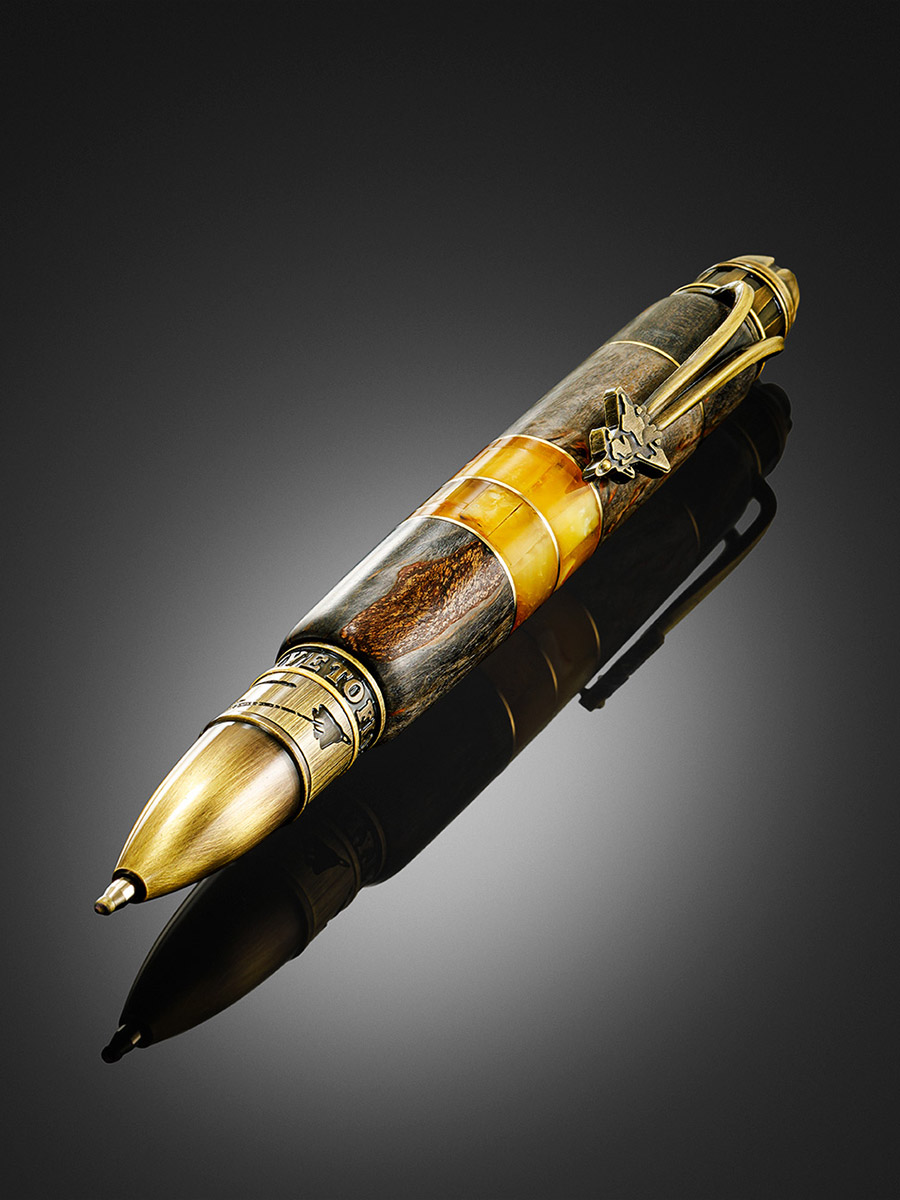 Ручка из древесины карельской берёзы и натурального янтаря «Истребитель»