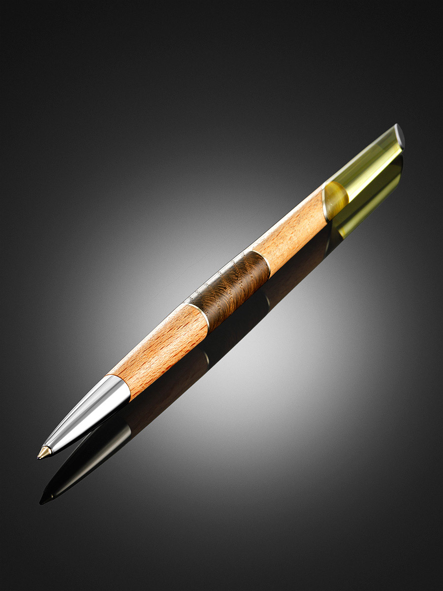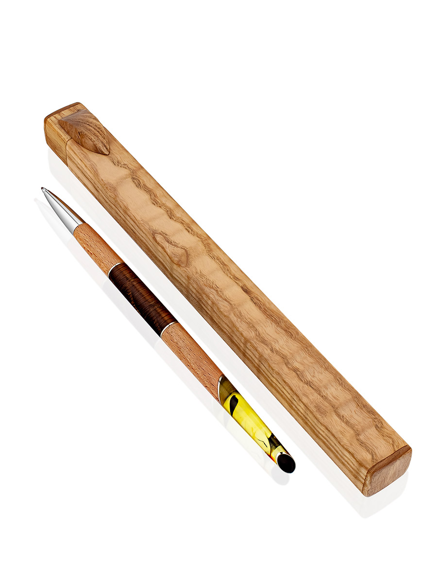 Ручка из древесины ясеня, со вставками из натурального янтаря и нейзильбера «Олливандер»