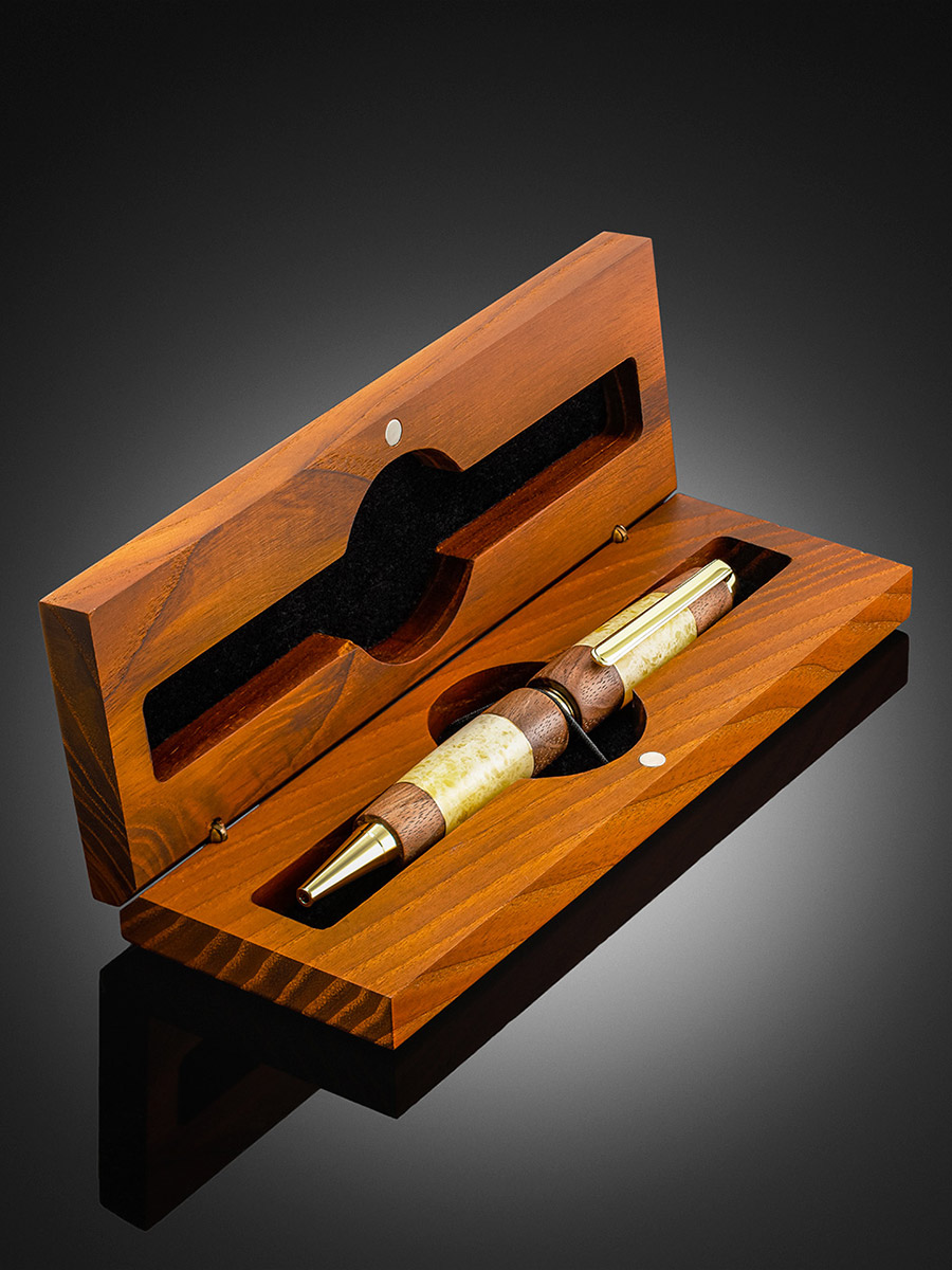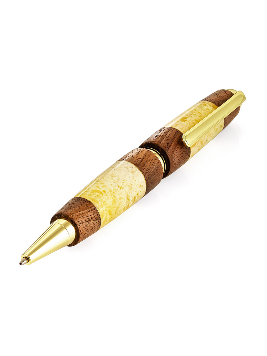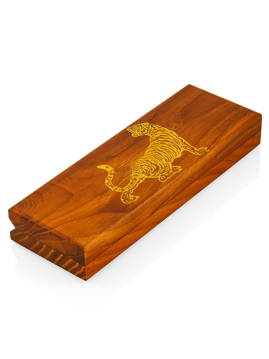 Ручка из янтаря и дерева в деревянном футляре с гравировкой «Тигр»