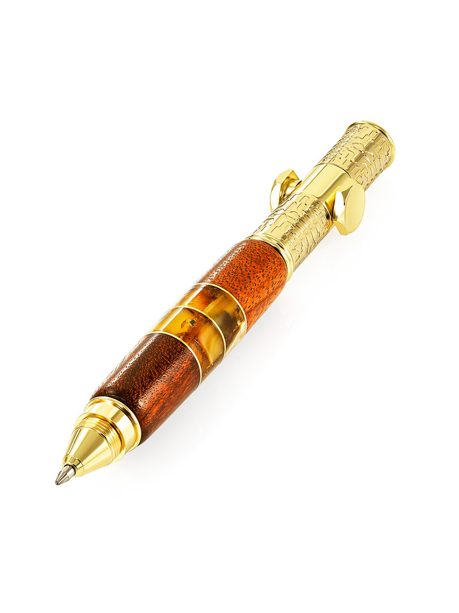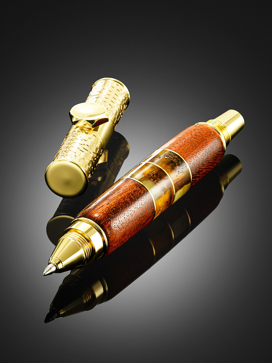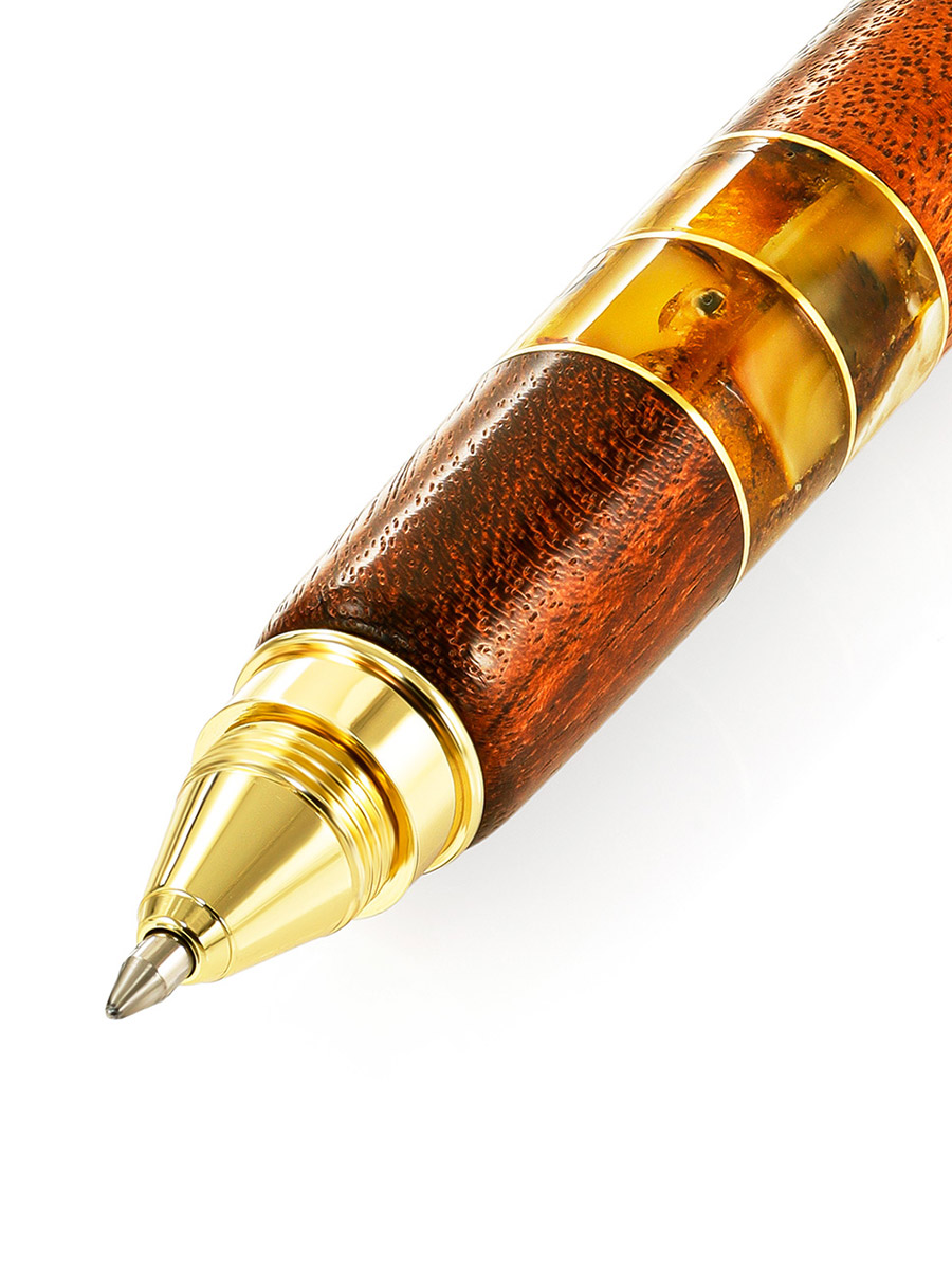 Ручка-спиннер с корпусом из дерева и янтаря