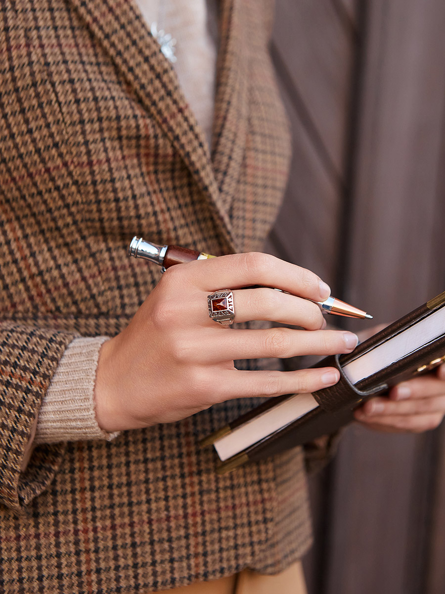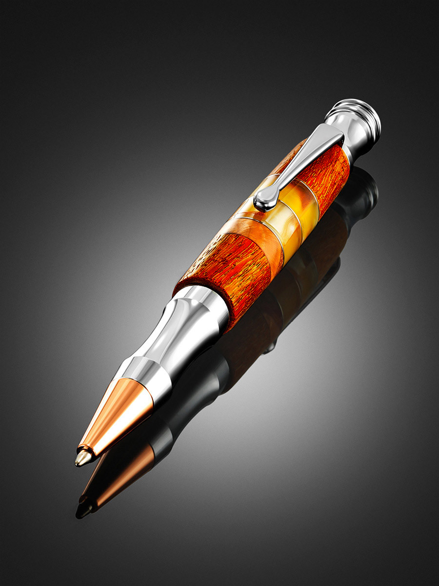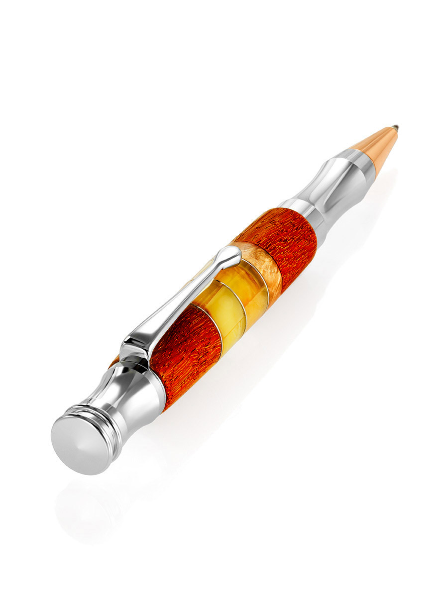 Ручка, украшенная вставками древесины кумару и натуральным янтарём