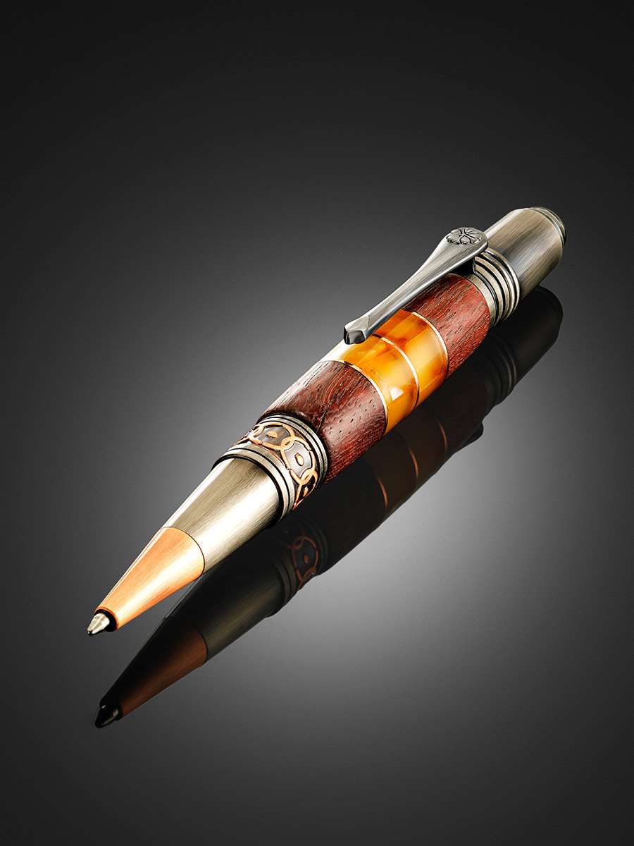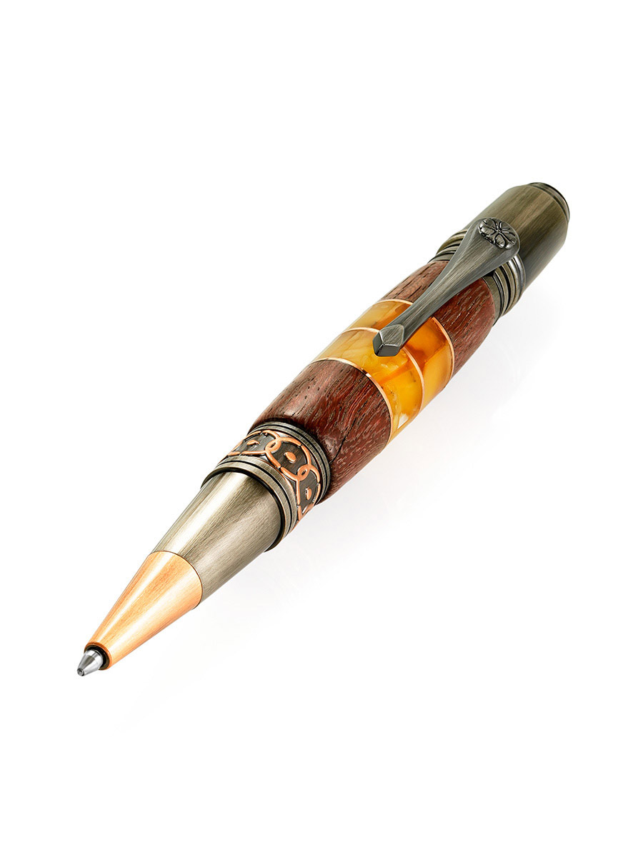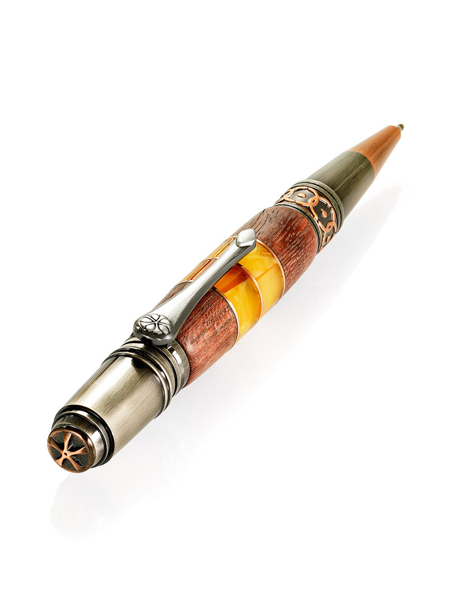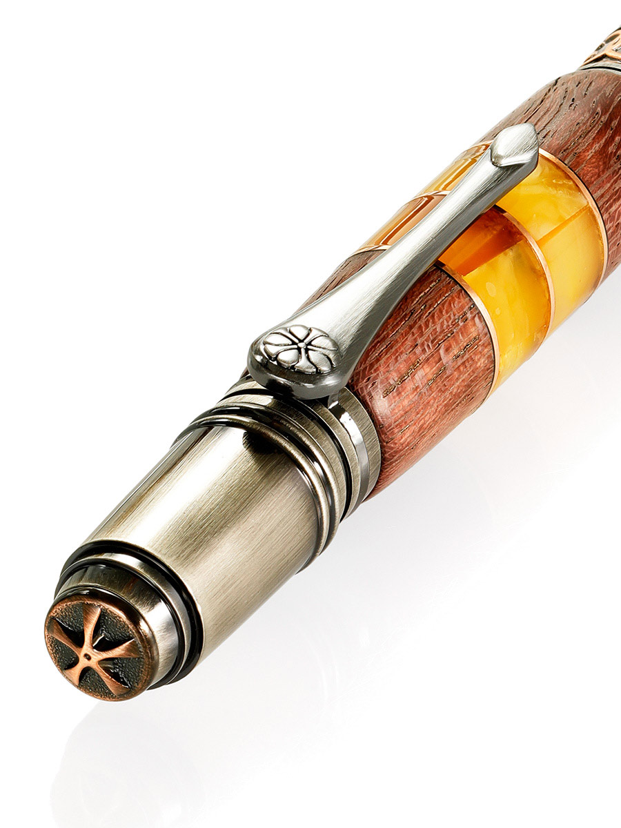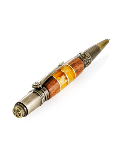 Ручка, украшенная вставками из древесины и натурального янтаря