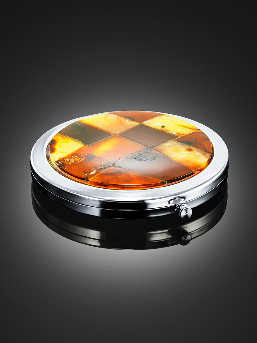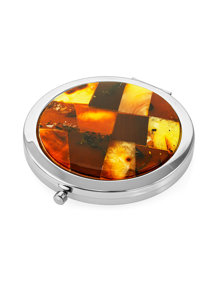 Складное зеркальце, инкрустированное янтарной мозаикой