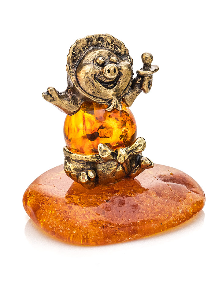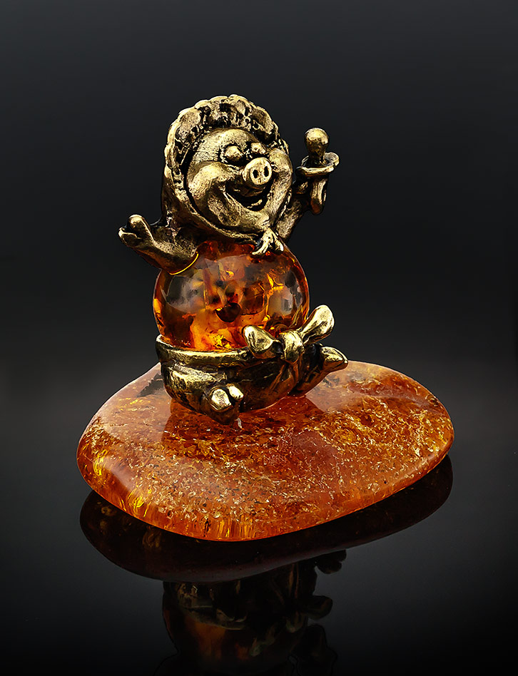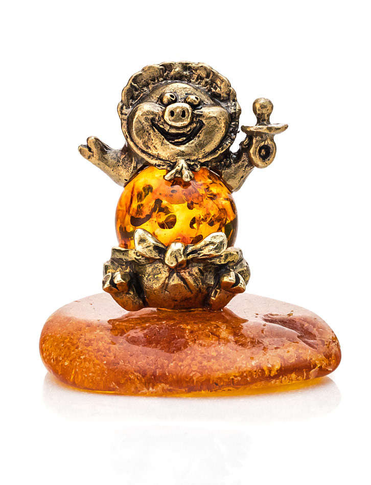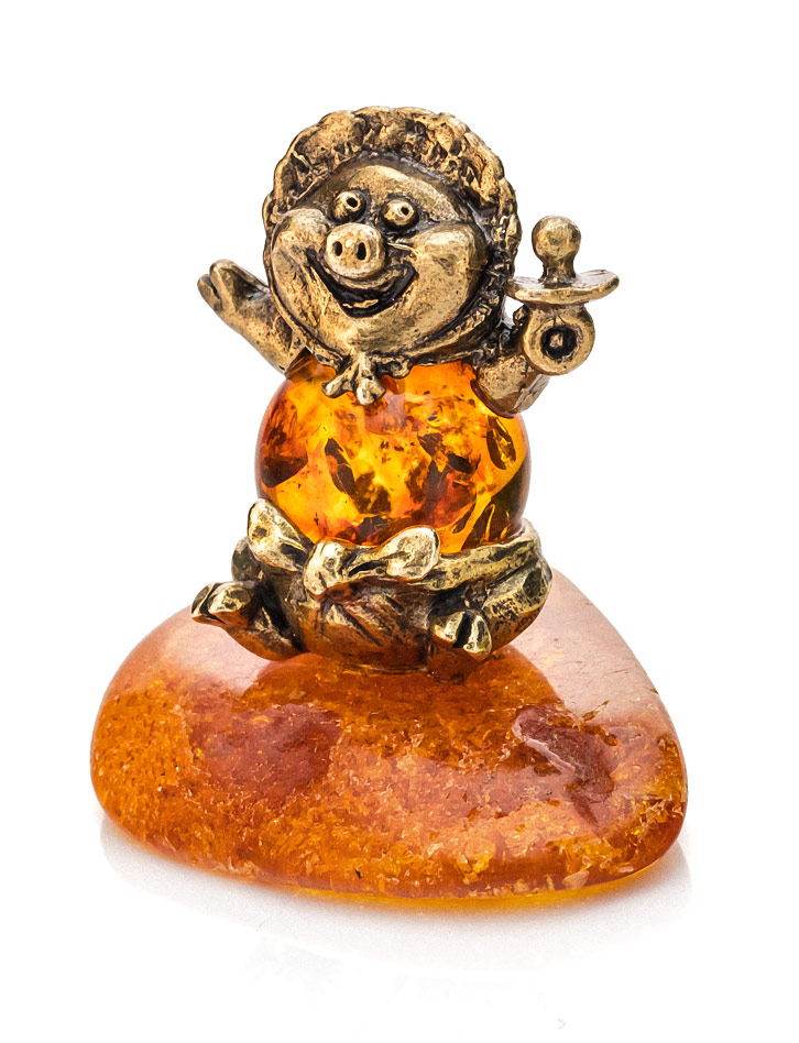 Сувенир из латуни с натуральным янтарём «Пятачок»
