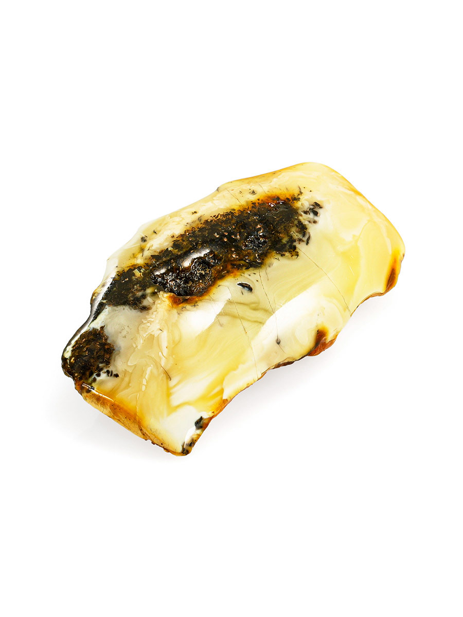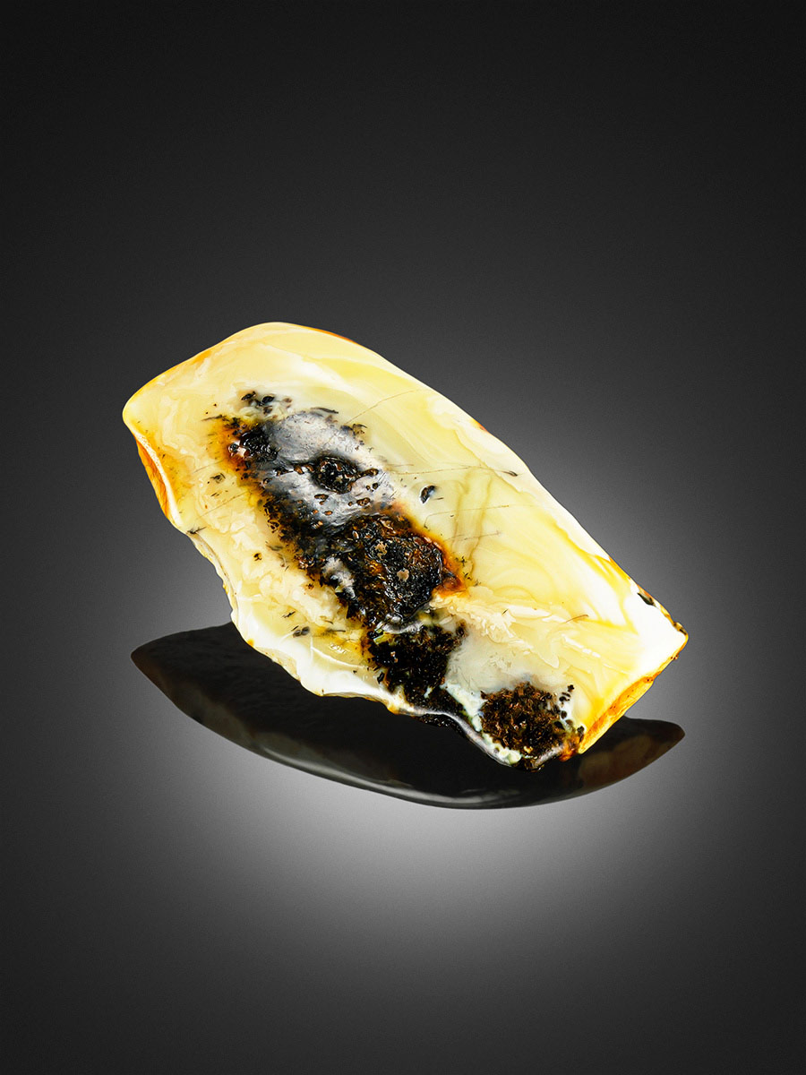 Сувенирный кусочек янтаря с пейзажной текстурой