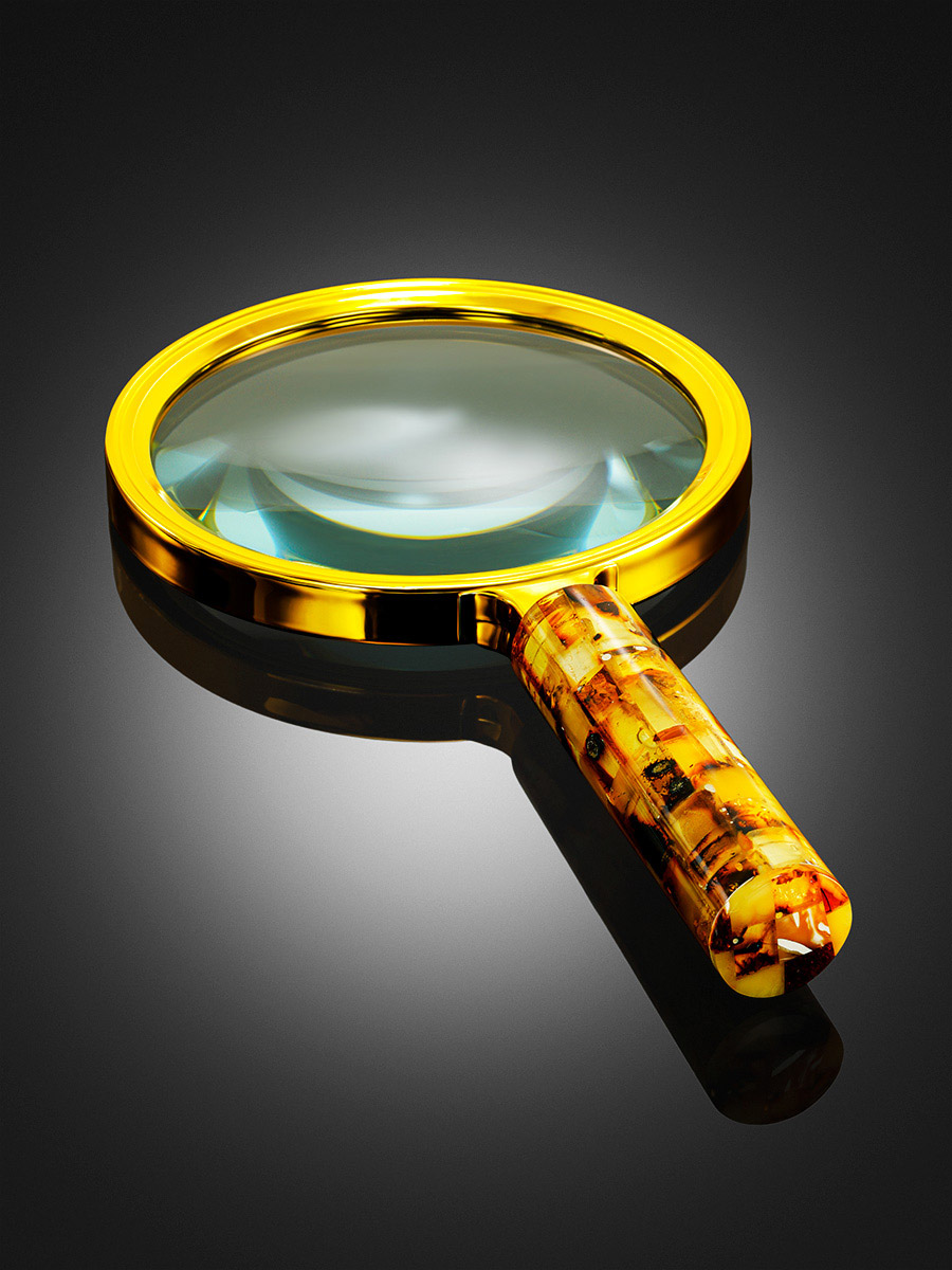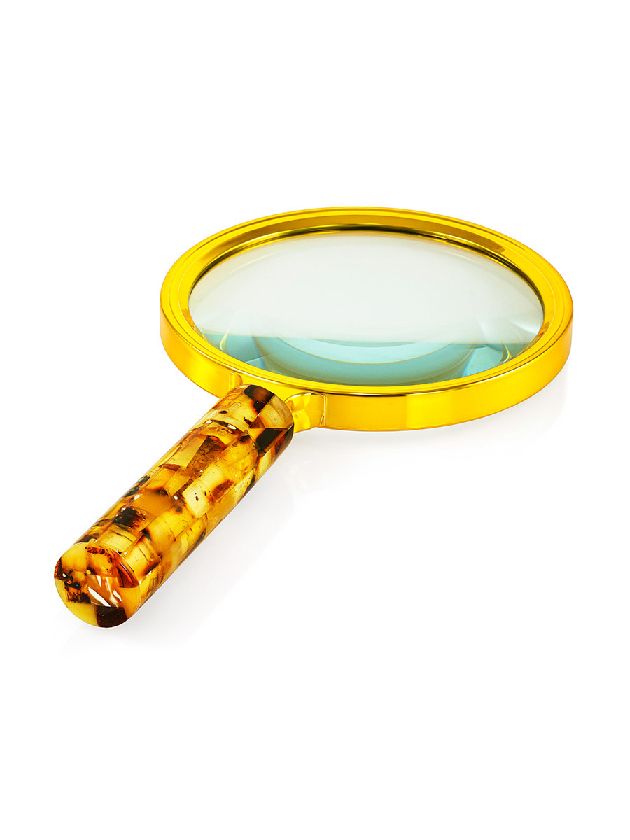 Увеличительное стекло с ручкой, украшенной натуральным янтарём