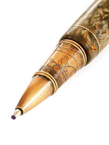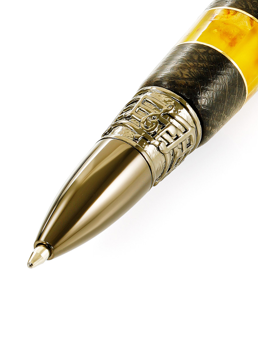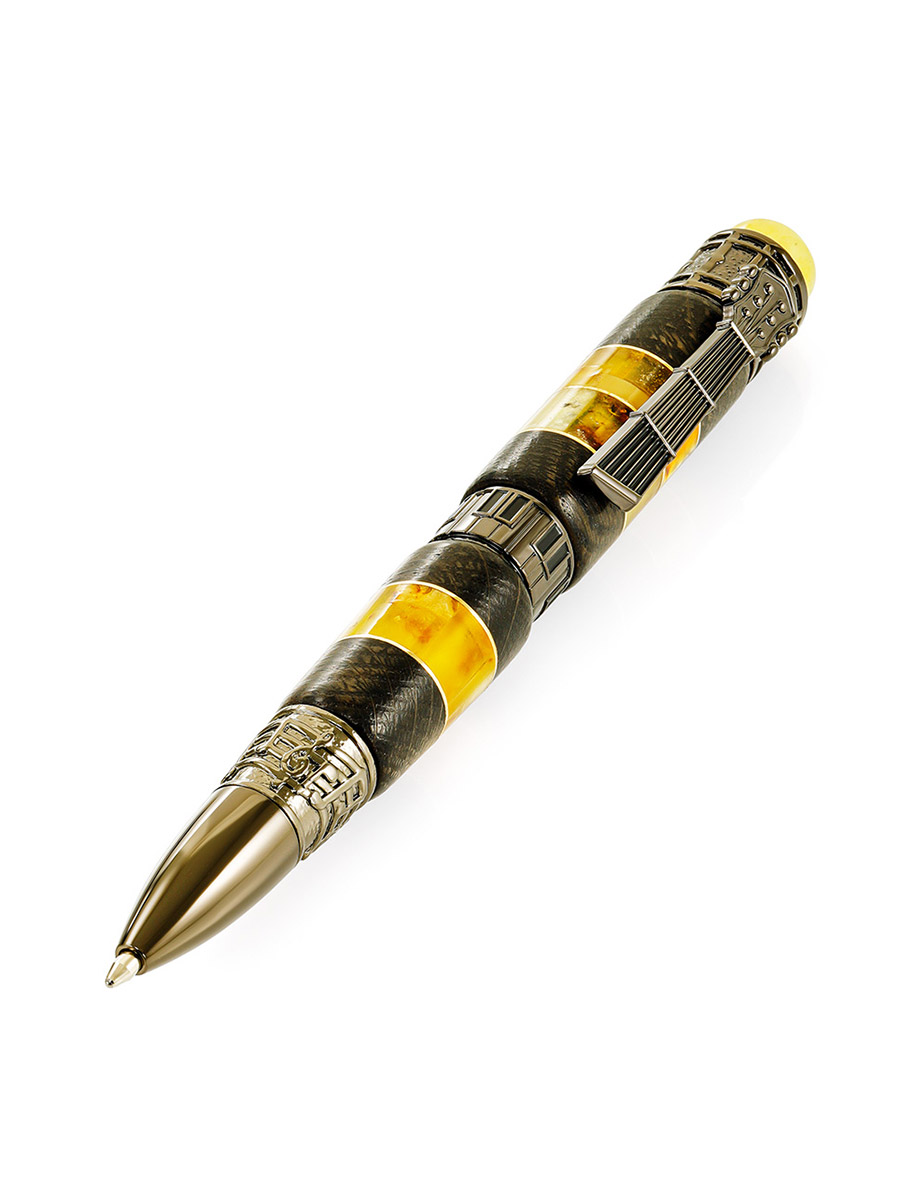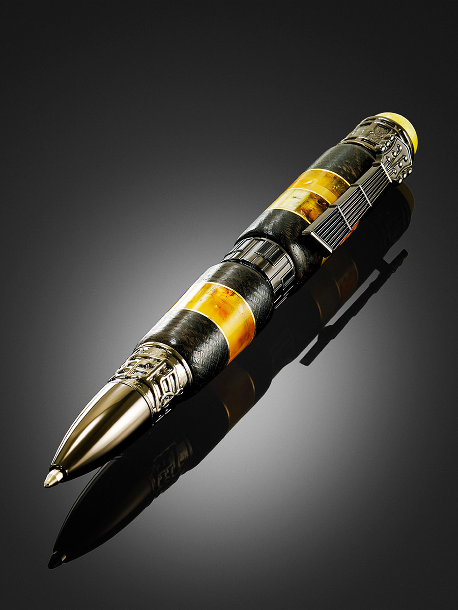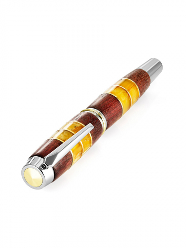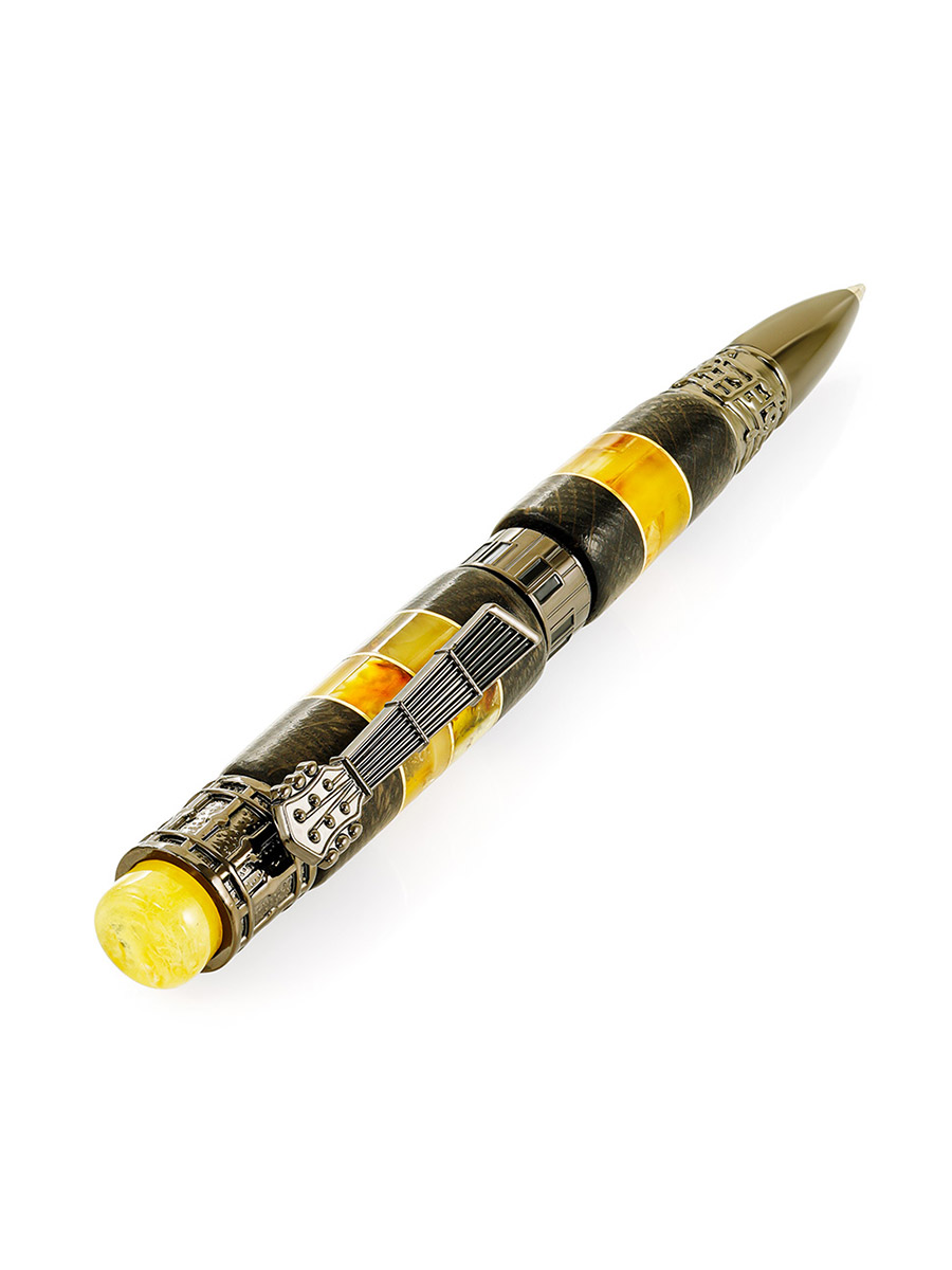 Яркая ручка из морёного дуба и натурального янтаря «Мелодия»