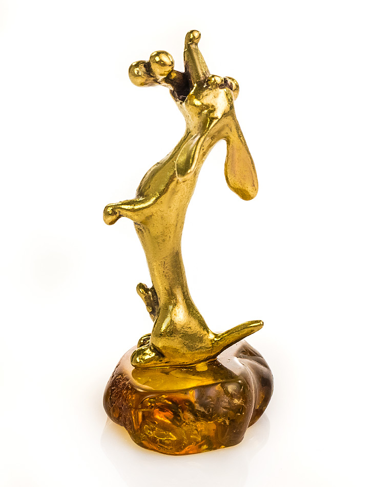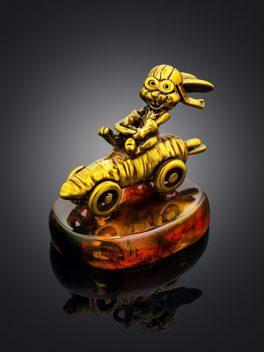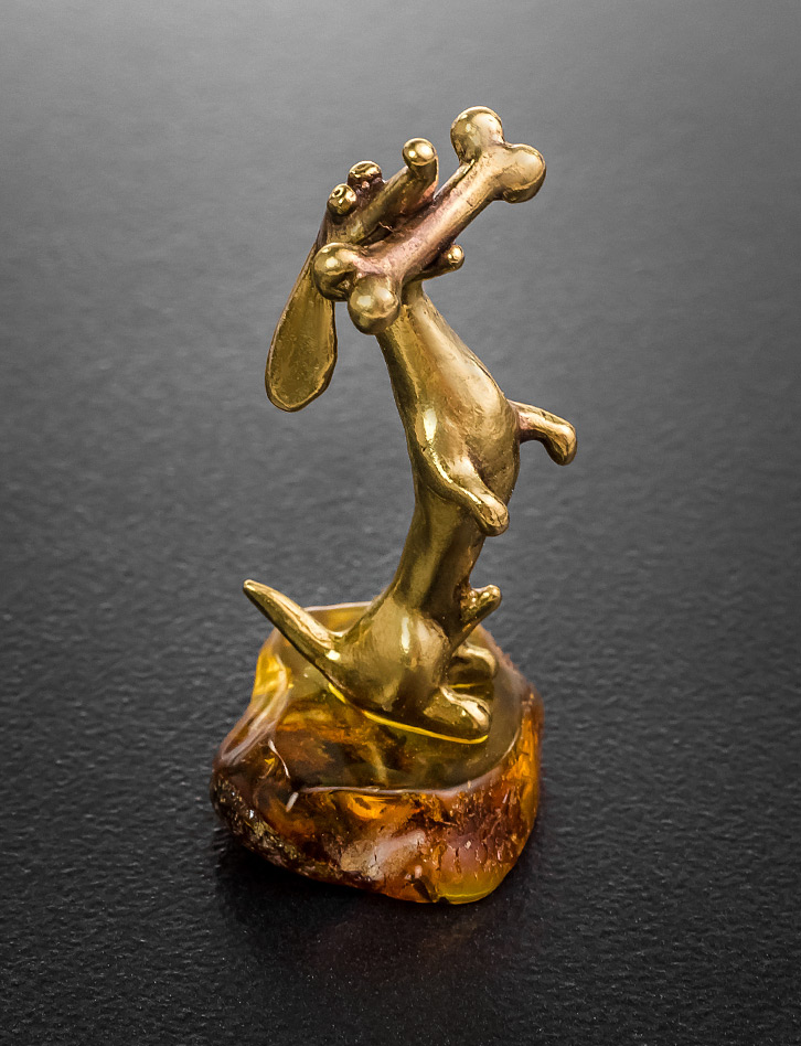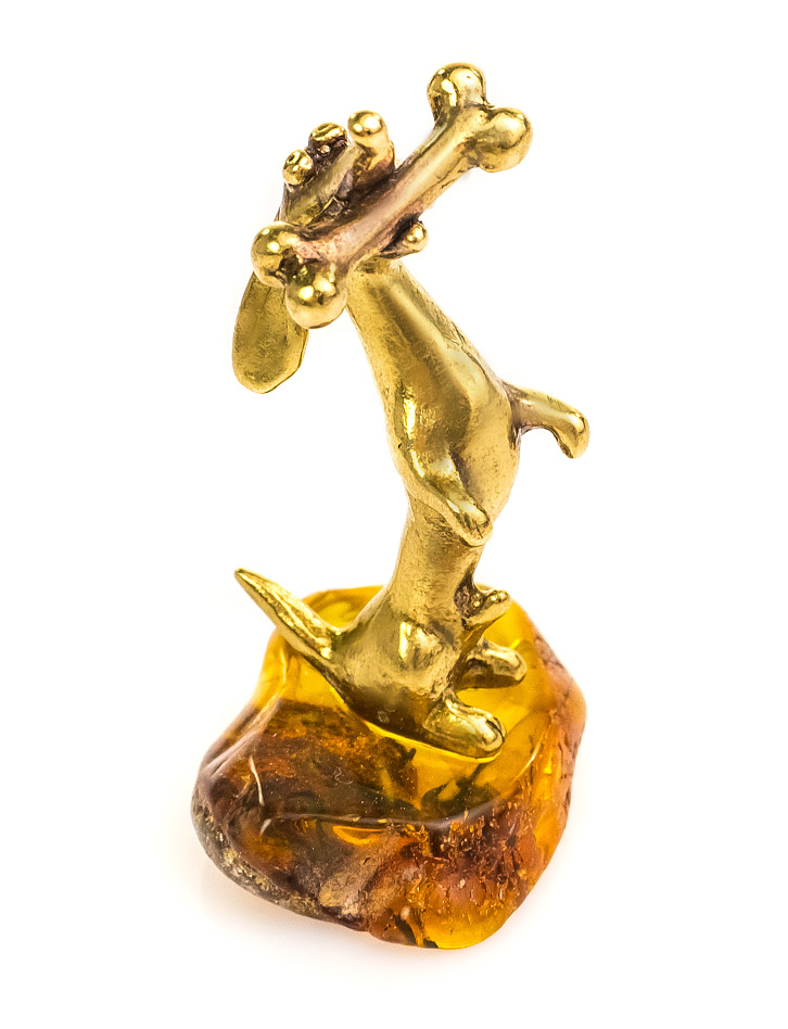 Забавная фигурка собачки на подставке из цельного янтаря «Такса»