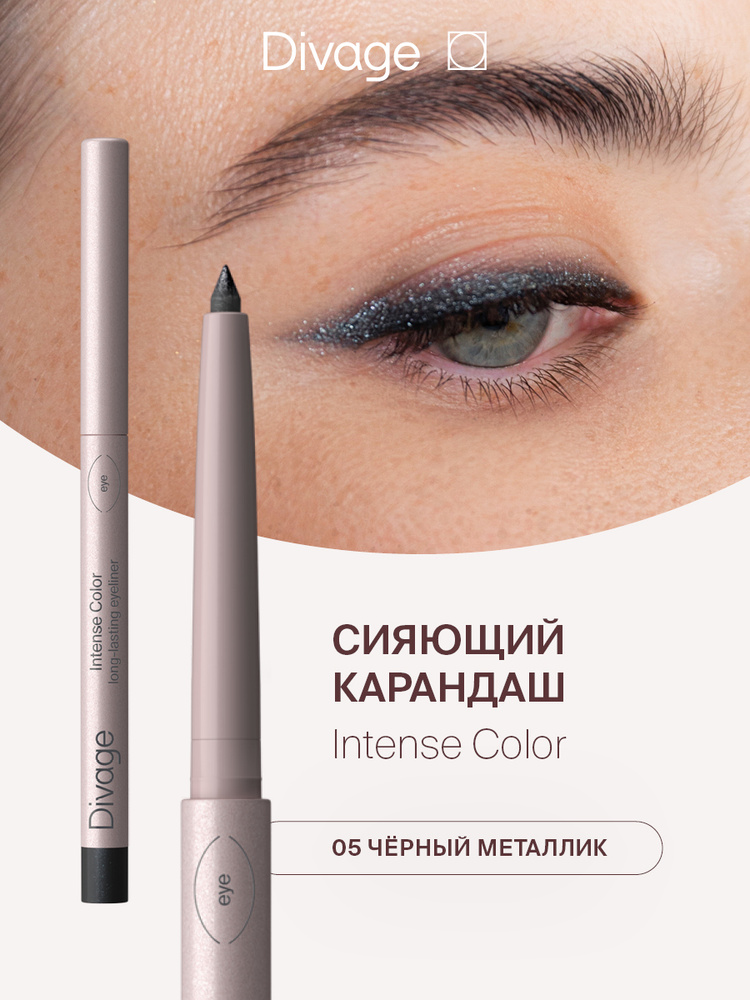 Карандаш для глаз черный с блестками от бренда декоративной косметики Divage (Диваж) Intense Color long-lasting eyeliner - универсальный продукт для макияжа глаз. Гелевый карандаш для глаз имеет скользящую текстуру и легко наносится. Карандаш для глаз блестящий отлично подходит для растушевки.