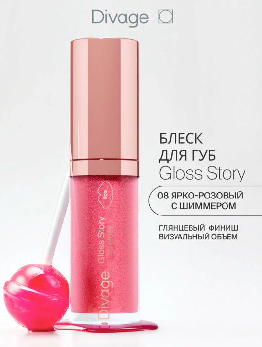 Divage Блеск д/губ Gloss Story 08 raspberry насыщ. роз. с шиммером