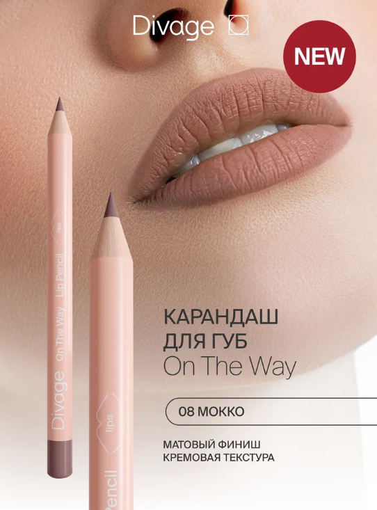 Новая линейка карандашей для губ On the way от бренда декоративной косметики Divage (Диваж) - секрет безупречного макияжа губ! Контур для губ имеет устойчивую формулу, насыщенный цвет. Кремовая текстура подходит даже для чувствительных губ, держится весь день и продлевает стойкость помады.