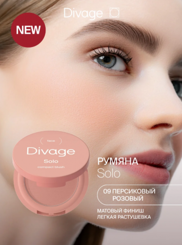 Румяна от Divage Solo – это универсальный продукт, который можно наносить не только на щеки и скулы, но и на веки, шею и подчеркнуть рельеф ключиц.