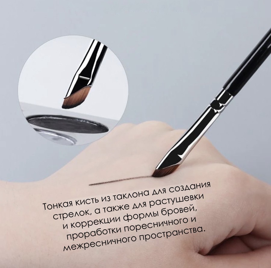 Тонкая кисть из таклона для создания стрелок, а также для растушевки и коррекции формы бровей, проработки поресничного и межресничного пространства.