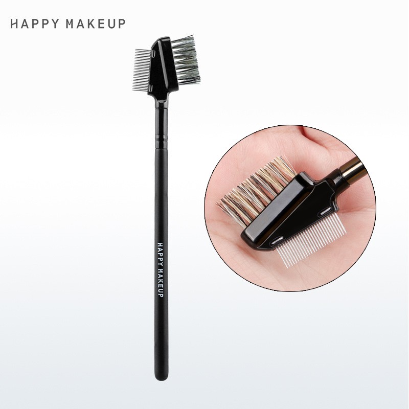 Двусторонняя расческа для ресниц и бровей (металлическая + щетка) Happy Make up