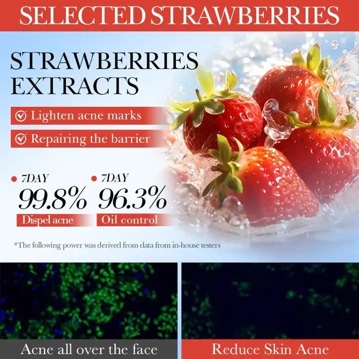 ​Тканевая маска из тонкой биоразлагаемой целлюлозы с экстрактом клубники регулирует водно-липидный и жировой баланс кожи, сужает поры, делая их менее заметными, оказывает антибактериальное и осветляющее действие, выравнивает тон лица и улучшает структуру кожи. Обладает антиоксидантным действием. Лаванды успокаивает кожу. Успокаивает и оказывает антибактериальное действие.​