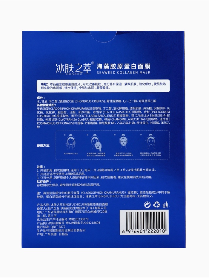 Гидрогелевые маски для лица с коллагеном, водоросли, 150 г, набор 5 шт.