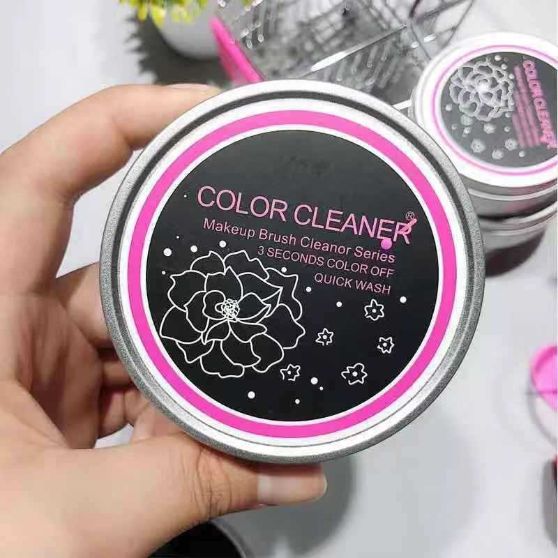 Губка для сухой чистки кистей для макияжа в металлической баночке