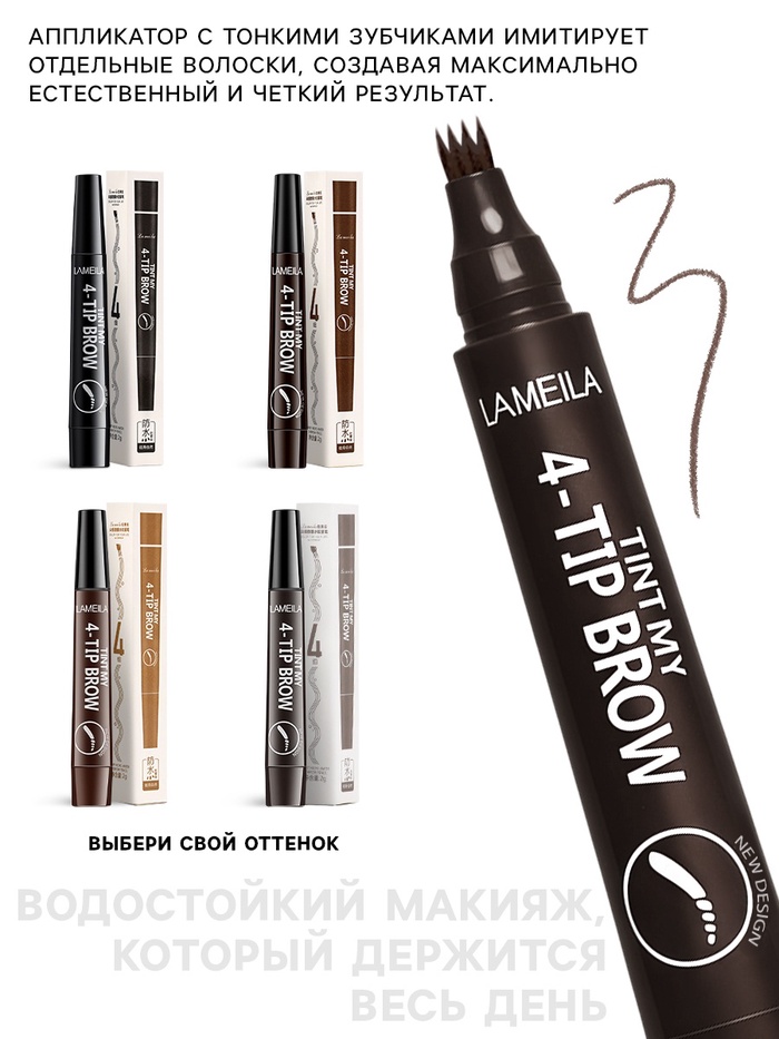 Водостойкий карандаш для бровей оттенок 04, коричневый, 2 г