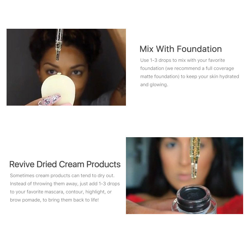 Вы также можете добавить 1-3 капли этого масла в свой любимый тональный крем для достижения дополнительного сияния и увлажнения. При использовании сушеных кремовых продуктов, например консилеров, контуров, хайлайтеров или помад для бровей, добавьте несколько капель масла, чтобы вернуть им жизнь.