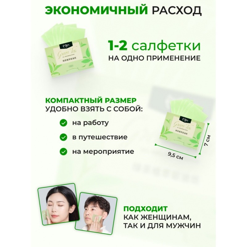Матирующий салфетки против жирного блеска с зеленым чаем, 100 шт.