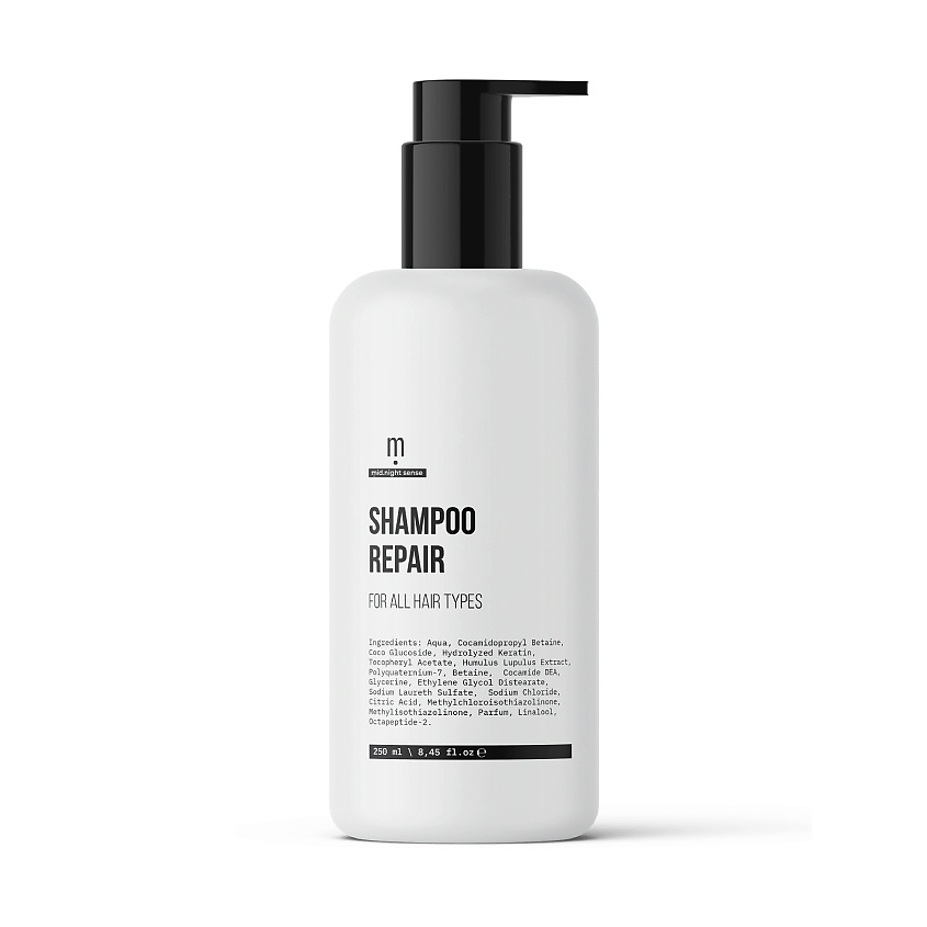 Восстанавливающий шампунь для всех типов волос включает в себя комплекс активных компонентов, таких как: кератин, бетаин и экстракт хмеля. Благодаря добавлению Octapeptide-2 - шампунь стимулирует рост и укрепление волос, а также обеспечивает защиту от неблагоприятных условий окружающей̆ среды. 250 мл