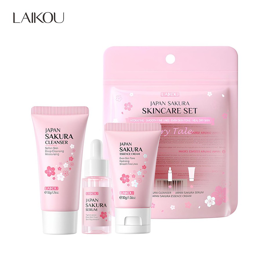 1. Пе..показатьнка для умывания с экстрактом сакуры, 50 гр.2. Сыворотка для лица с экстрактом сакуры, 17 мл.3. Крем для лица с экстрактом сакуры, 30 гр.