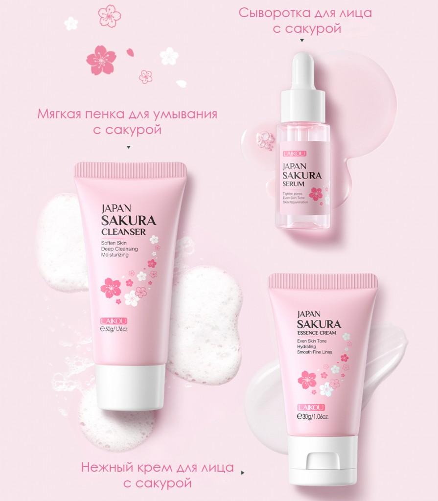 нка для умывания с экстрактом сакуры, 50 гр.2. Сыворотка для лица с экстрактом сакуры, 17 мл.3. Крем для лица с экстрактом сакуры, 30 гр.