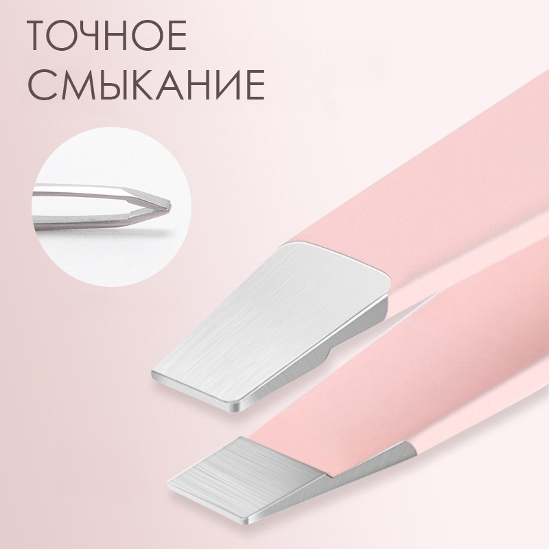 Набор пинцетов для бровей и ресниц 4 шт. в кожаном чехле. Цвет: Розовый